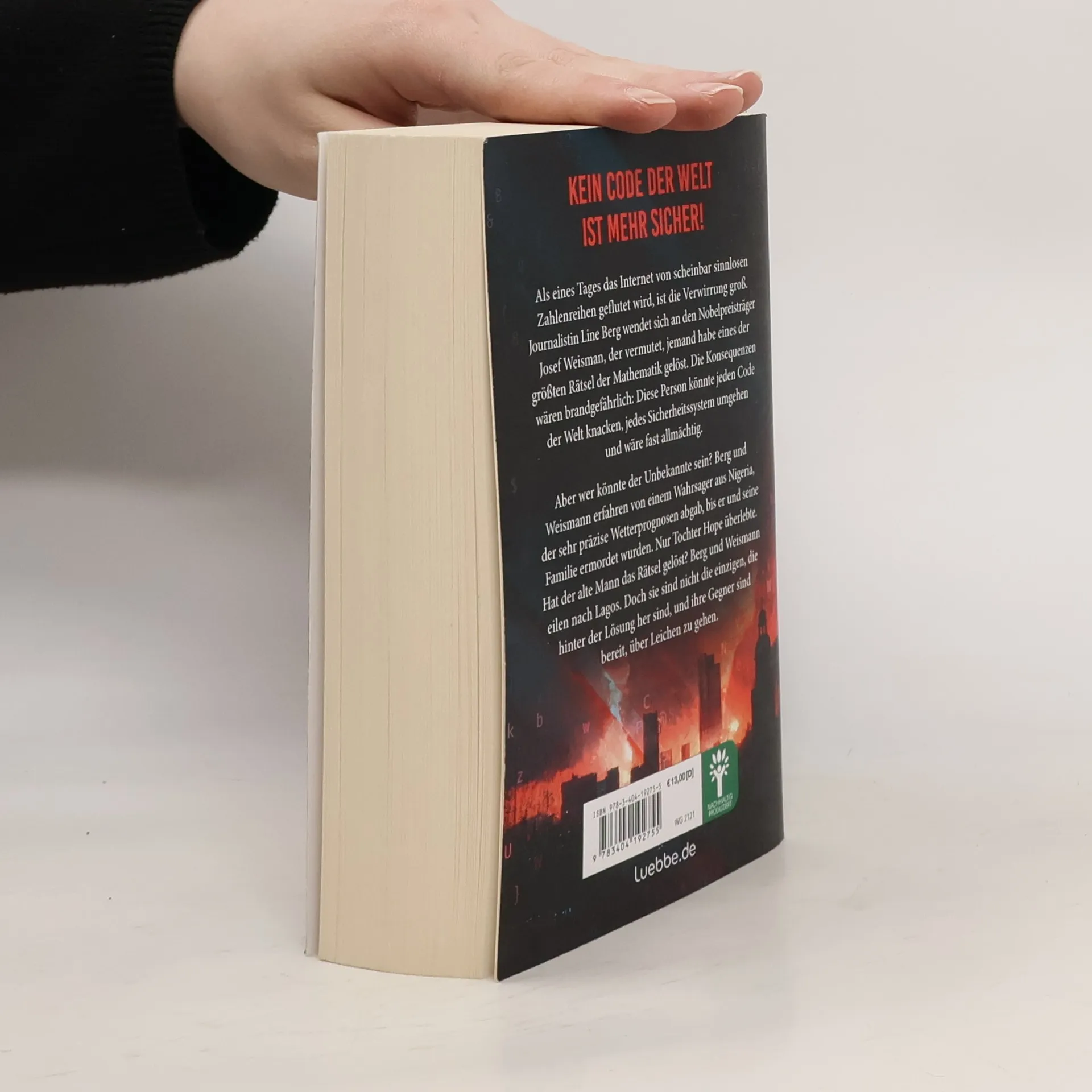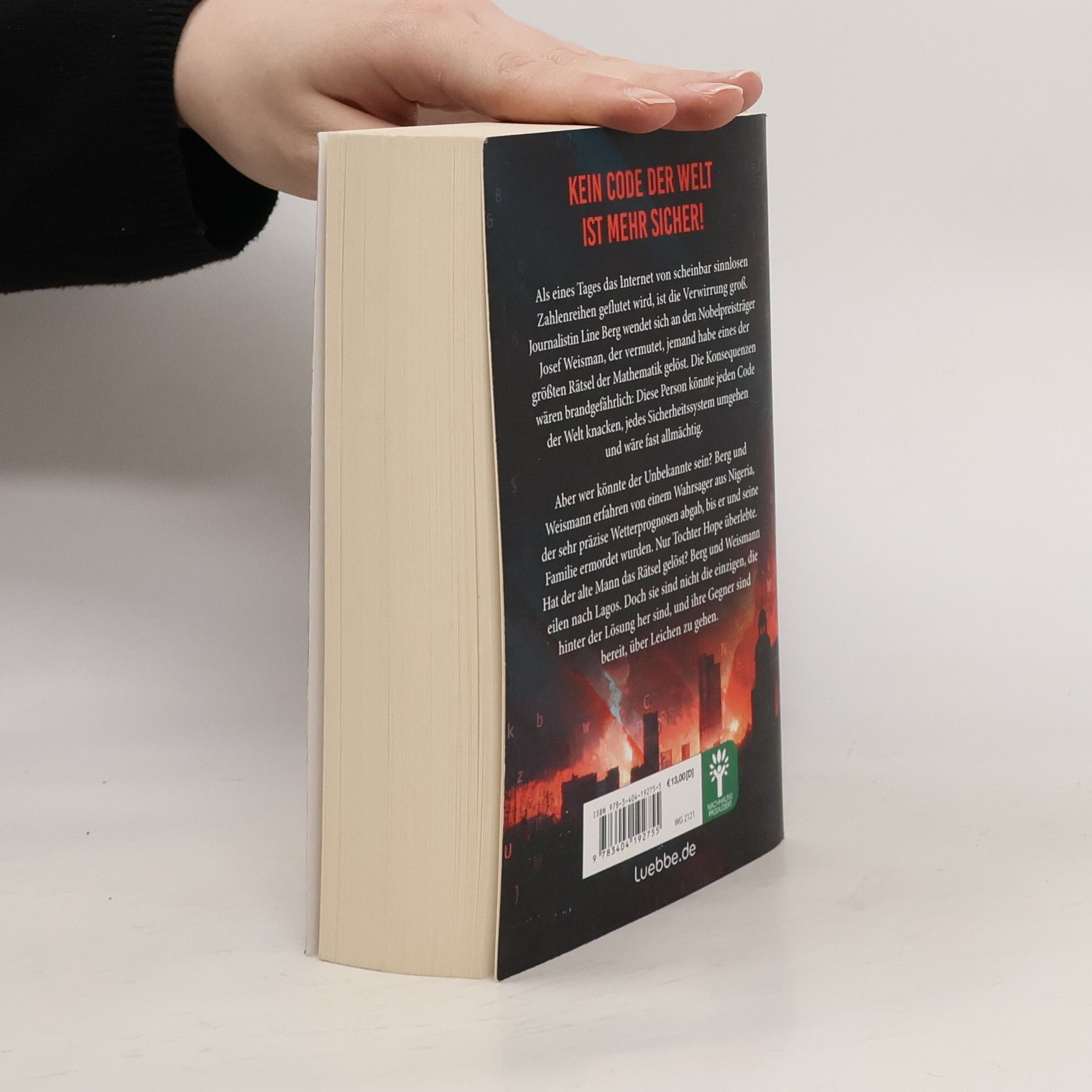 Kein Code der Welt ist mehr sicher! Als eines Tages das Internet von scheinbar sinnlosen Zahlenreihen geflutet wird, ist die Verwirrung groß. Journalistin Line Berg wendet sich an den Nobelpreisträger Josef Weisman, der vermutet, jemand habe eines der größten Rätsel der Mathematik gelöst. Die Konsequenzen wären brandgefährlich: Diese Person könnte jeden Code der Welt knacken, jedes Sicherheitssystem umgehen und wäre fast allmächtig. Aber wer könnte der Unbekannte sein? Berg und Weismann erfahren von einem Wahrsager aus Nigeria, der sehr präzise Wetterprognosen abgab, bis er und seine Familie ermordet wurden. Nur Tochter Hope überlebte. Hat der alte Mann das Rätsel gelöst? Berg und Weismann eilen nach Lagos. Doch sie sind nicht die einzigen, die hinter der Lösung her sind, und ihre Gegner sind bereit, über Leichen zu gehen.