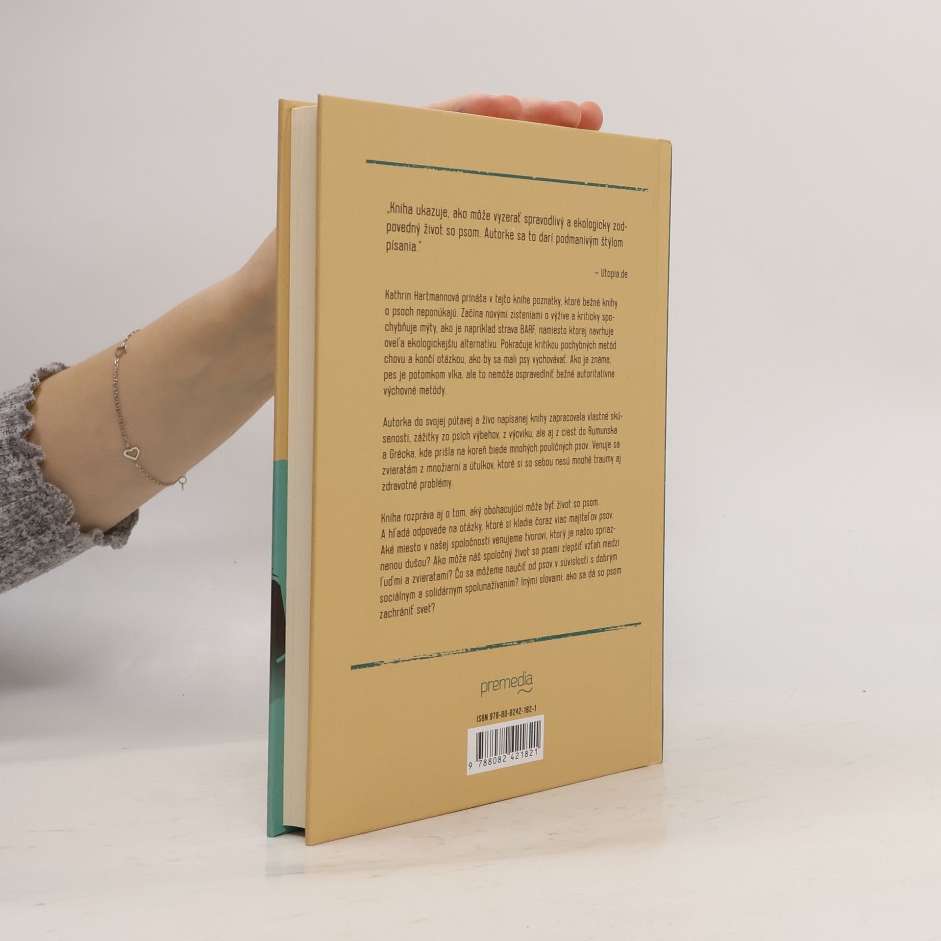 Kathrin Hartmannová prináša v tejto knihe poznatky, ktoré bežné knihy o psoch neponúkajú. Začína novými zisteniami o výžive a kriticky spochybňuje mýty, ako je napríklad strava BARF, namiesto ktorej navrhuje oveľa ekologickejšiu alternatívu. Pokračuje kritikou pochybných metód chovu a končí otázkou, ako by sa mali psy vychovávať. Ako je známe, pes je potomkom vlka, ale to nemôže ospravedlniť bežné autoritatívne výchovné metódy. Autorka do svojej pútavej a živo napísanej knihy zapracovala vlastné skúsenosti, zážitky zo psích výbehov, z výcviku, ale aj z ciest do Rumunska a Grécka, kde prišla na koreň biede mnohých pouličných psov. Venuje sa zvieratám z množiarní a útulkov, ktoré si so sebou nesú mnohé traumy aj zdravotné problémy. Kniha rozpráva aj o tom, aký obohacujúci môže byť život so psom. A hľadá odpovede na otázky, ktoré si kladie čoraz viac majiteľov psov: Aké miesto v našej spoločnosti venujeme tvorovi, ktorý je našou spriaznenou dušou? Ako môže náš spoločný život so psami zlepšiť vzťah medzi ľuďmi a zvieratami? Čo sa môžeme naučiť od psov v súvislosti s dobrým sociálnym a solidárnym spolunažívaním? Inými slovami: ako sa dá so psom zachrániť svet?