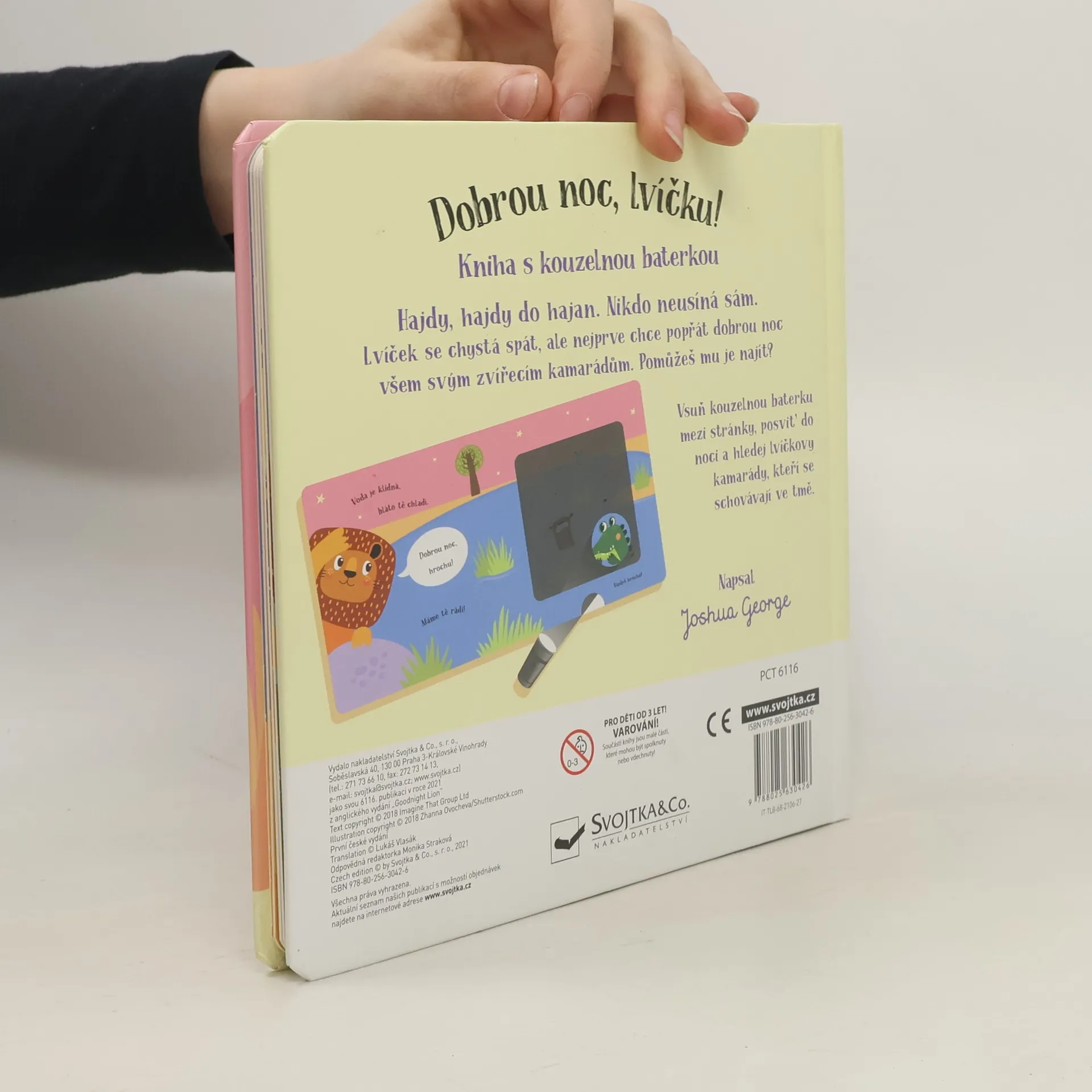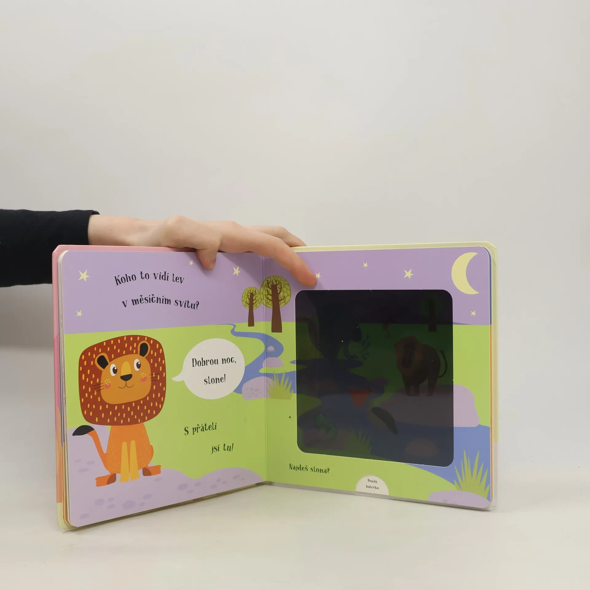 Kouzelné čtení na dobrou noc pro děti. Malý lev už se chystá spát, ale nejprve musí dát dobrou noc všem svým zvířecím kamarádům. Pomůžeš mu je najít? Vsuň kouzelnou baterku mezi stránky a zjisti, kdo se ukrývá v každé ilustraci, zobrazující noc. Text ve verších učí děti vnímat přirozený rytmus řeči. Chytře vyrobená okénka umožňují dětem hledat schovaná zvířátka pomocí přiložené kartonové pomůcky ve tvaru svítilny. Nabídněte svému dítěti před spaním nějakou zklidňující aktivitu. Tato knížka je pro to přímo stvořená.
