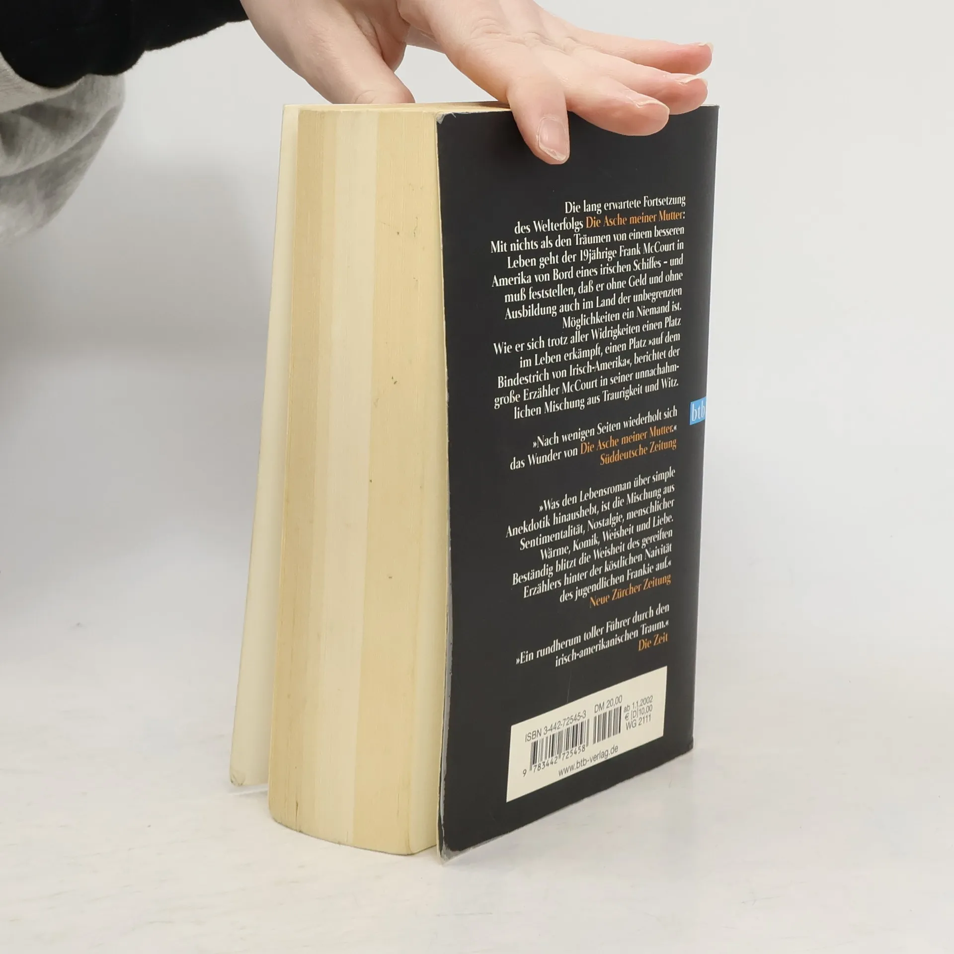 „‘Die Asche meiner Mutter‘ ist so gut – sie verdient eine Fortsetzung.“ So schrieb die New York Times über Frank McCourts Bestseller. Mit dem vorliegenden Buch erfüllte der Autor nicht nur den Wunsch seines Rezensenten, sondern auch die Hoffnungen der Millionen von begeisterten Lesern und schrieb seine Geschichte fort. „Ein rundherum tolles Land“ beginnt dort, wo der erste Teil endet: als Frank McCourt mit 19 Jahren an Bord eines irischen Schiffes nach Amerika kommt und nichts hat als die Hoffnung auf eine bessere Zukunft. Arm, mit schlechten Zähnen und entzündeten Augen, ohne jede nennenswerte Ausbildung, erreicht er das Land seiner Träume – und muss feststellen, dass er mit seinem Aussehen und seinem irischen Akzent ein Nichts ist. Wie er sich trotz aller Widrigkeiten einen Platz im Leben erkämpft, einen Platz „auf dem Bindestrich von Irisch-Amerika“, berichtet der große Erzähler McCourt in seiner unnachahmlichen Mischung aus Traurigkeit und Witz. Seine unglaublichen Geschichten über Priester und Jungfrauen, über irische Kneipen, bayrische Bierkeller und die merkwürdigen Sitten der Amerikaner im Allgemeinen verbinden sich zu einer augenzwinkernden Hommage an das Land der unbegrenzten Möglichkeiten, in der „toll“ nicht nur „großartig“ bedeutet.