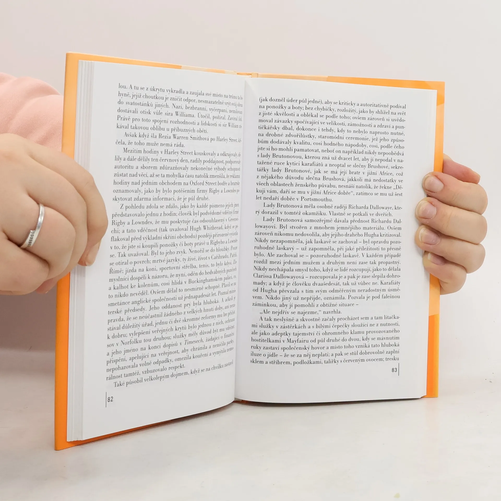 Londýnské jitro, červen 1923. Paní Clarissa Dallowayová jde do květinářství pro výzdobu na svůj dnešní večírek. Než však tahle událost pro lidi z lepších kruhů nastane, strávíme v její společnosti obyčejný den, který nás nenechá na pochybách, že pod slupkou stárnoucí, průměrné středostavovské paničky bije srdce se stejně vroucí pravidelností, s jakou se na Toweru každou čtvrthodinu hlásí Big Ben. Woolfová však nejenže rozbíjí klišé o jedné snobské madam. Technikou proudu vědomí a s přispěním vedlejších postav tohoto okouzlujícího letního capriccia před námi postupně odhalí skutečné nitro paní Dallowayové, které působí věrněji než sebetrefnější realistický popis, a také její obrovskou žízeň po životě. Próza inspirovala světoznámý román M. Cunninghama Hodiny a stejnojmenný oscarový film.... celý text