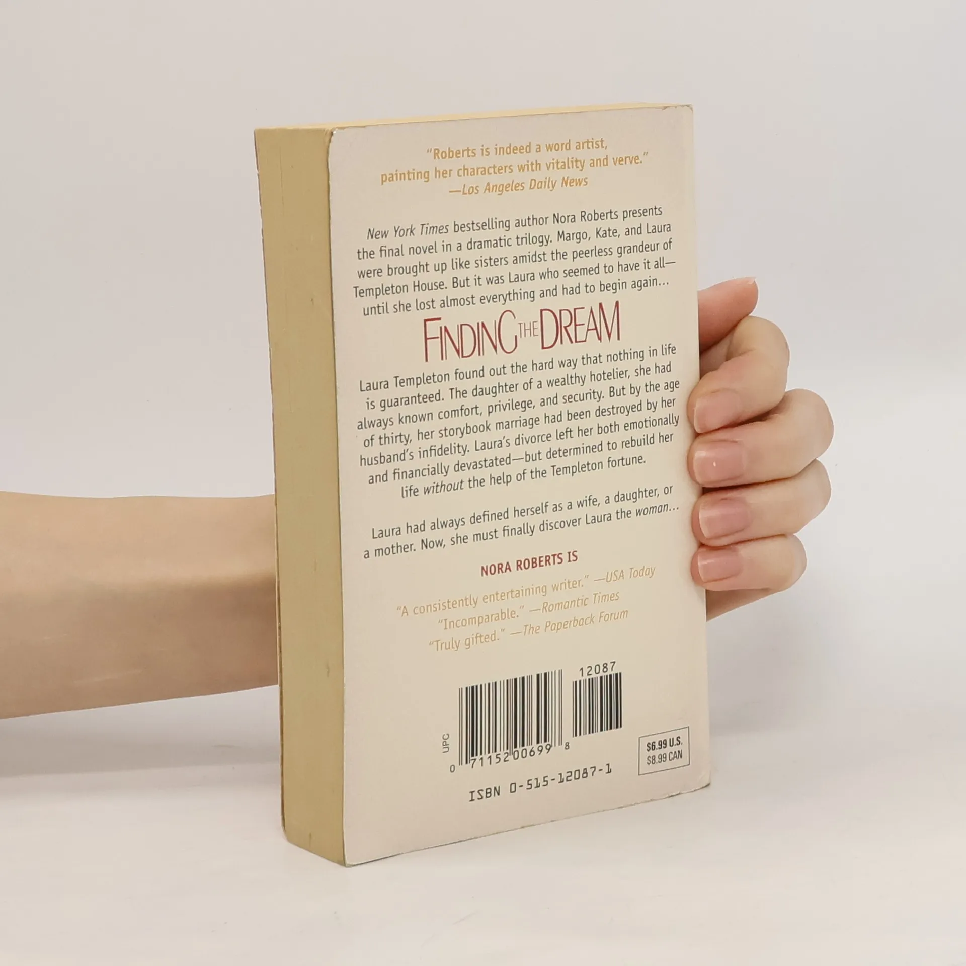 In the final novel of Nora Roberts’s Dream Trilogy, Laura struggles to mend a broken heart and broken family—until someone from her past makes all of her dreams come true… Laura Templeton found out the hard way that nothing in life is guaranteed. The daughter of a wealthy hotelier, she had always known comfort, privilege, and security. But by the age of thirty, her storybook marriage had been destroyed by her husband’s infidelity. Laura’s divorce left her both emotionally and financially devastated—but determined to rebuild her life without the Templeton fortune. Laura had always defined herself as a wife, a daughter, or a mother. Now, she must finally discover Laura the woman... Don't miss the other books in the Dream Trilogy Daring to Dream Holding the Dream