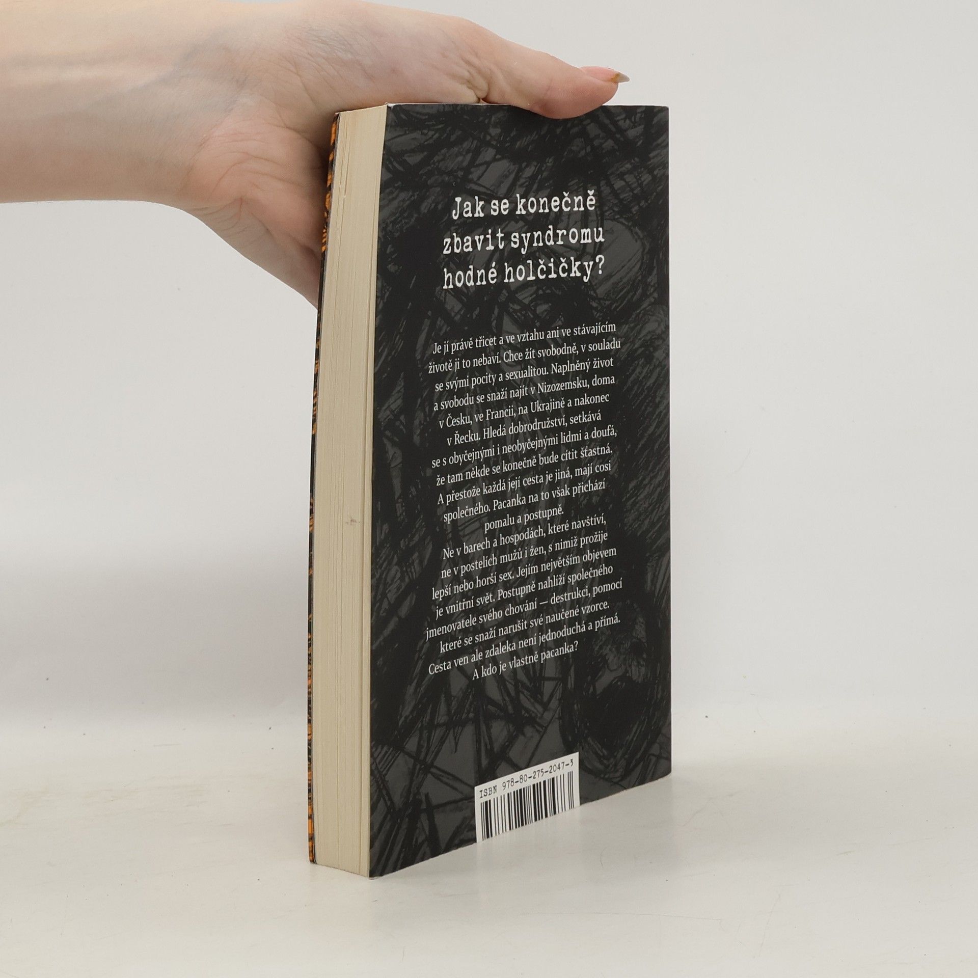 Jak se konečně zbavit syndromu hodné holčičky? Je jí právě třicet a ve vztahu ani ve stávajícím životě ji to nebaví. Chce žít svobodně, v souladu se svými pocity a sexualitou. Naplněný život a svobodu se snaží najít v Nizozemsku, doma v Česku, ve Francii, na Ukrajině a nakonec v Řecku. Hledá dobrodružství, setkává se s obyčejnými i neobyčejnými lidmi a doufá, že tam někde se konečně bude cítit šťastná. A přestože každá její cesta je jiná, mají cosi společného. Pacanka na to však přichází pomalu a postupně. Ne v barech a hospodách, které navštíví, ne v postelích mužů i žen, s nimiž prožije lepší nebo horší sex. Jejím největším objevem je vnitřní svět. Postupně nahlíží společného jmenovatele svého chování — destrukci, pomocí které se snaží narušit své naučené vzorce. Cesta ven ale zdaleka není jednoduchá a přímá. A kdo je vlastně pacanka?