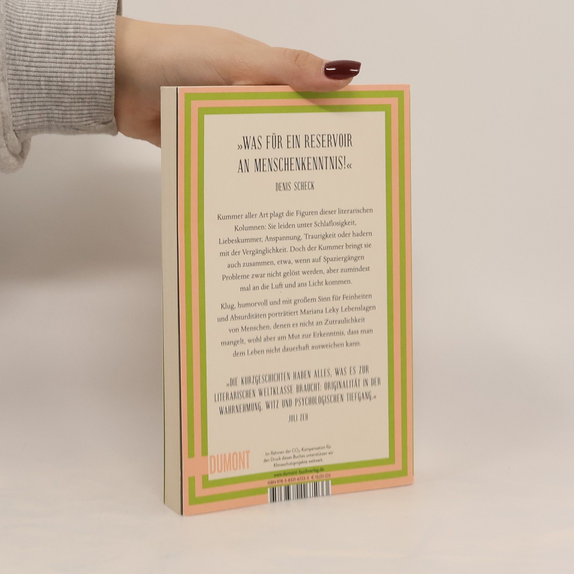 »Alle wirken innerlich blitzblank, nur in unserem Inneren sieht es aus wie bei Hempels unterm Sofa«, denkt sich Kioskbesitzer Armin, als er vergeblich versucht, erfolgreich zu meditieren. Und auch im Inneren der anderen Figuren dieser literarischen Kolumnen herrscht Unordnung: Frau Wiese kann nicht mehr schlafen, Herr Pohl ist nachhaltig verzagt, Lisa hat ihren ersten Liebeskummer, Vadims Hände zittern, Frau Schwerter muss ganz dringend entspannen, ein trauriger Patient hat seine Herde verloren, und Psychoanalytiker Ulrich legt sich mit der Vergänglichkeit an. Kummer aller Art plagt die Menschen, die sich, mal besser, mal schlechter, durch den Alltag manövrieren. Aber der Kummer vereint sie auch, etwa, wenn auf Spaziergängen Probleme zwar nicht gelöst werden, aber zumindest mal an die Luft und ans Licht kommen. Klug, humorvoll und mit großem Sinn für Feinheiten und Absurditäten porträtiert Mariana Leky Lebenslagen von Menschen, denen es nicht an Zutraulichkeit mangelt, wohl aber am Mut zur Erkenntnis, dass man dem Leben nicht dauerhaft ausweichen kann. Die in ›Kummer aller Art‹ versammelten Texte erschienen erstmals als Kolumnen in PSYCHOLOGIE HEUTE.