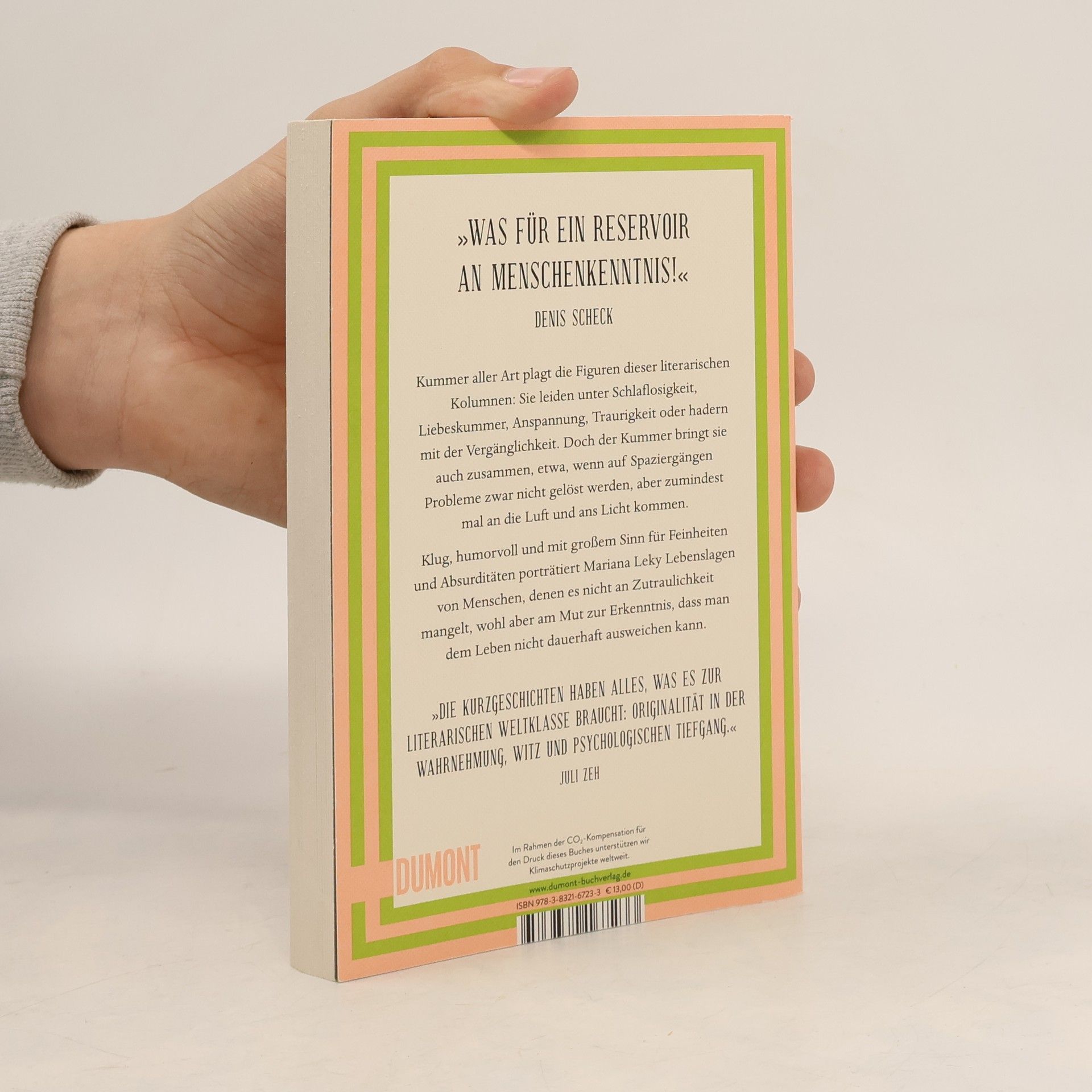 »Alle wirken innerlich blitzblank, nur in unserem Inneren sieht es aus wie bei Hempels unterm Sofa«, denkt sich Kioskbesitzer Armin, als er vergeblich versucht, erfolgreich zu meditieren. Und auch im Inneren der anderen Figuren dieser literarischen Kolumnen herrscht Unordnung: Frau Wiese kann nicht mehr schlafen, Herr Pohl ist nachhaltig verzagt, Lisa hat ihren ersten Liebeskummer, Vadims Hände zittern, Frau Schwerter muss ganz dringend entspannen, ein trauriger Patient hat seine Herde verloren, und Psychoanalytiker Ulrich legt sich mit der Vergänglichkeit an. Kummer aller Art plagt die Menschen, die sich, mal besser, mal schlechter, durch den Alltag manövrieren. Aber der Kummer vereint sie auch, etwa, wenn auf Spaziergängen Probleme zwar nicht gelöst werden, aber zumindest mal an die Luft und ans Licht kommen. Klug, humorvoll und mit großem Sinn für Feinheiten und Absurditäten porträtiert Mariana Leky Lebenslagen von Menschen, denen es nicht an Zutraulichkeit mangelt, wohl aber am Mut zur Erkenntnis, dass man dem Leben nicht dauerhaft ausweichen kann. Die in ›Kummer aller Art‹ versammelten Texte erschienen erstmals als Kolumnen in PSYCHOLOGIE HEUTE.
