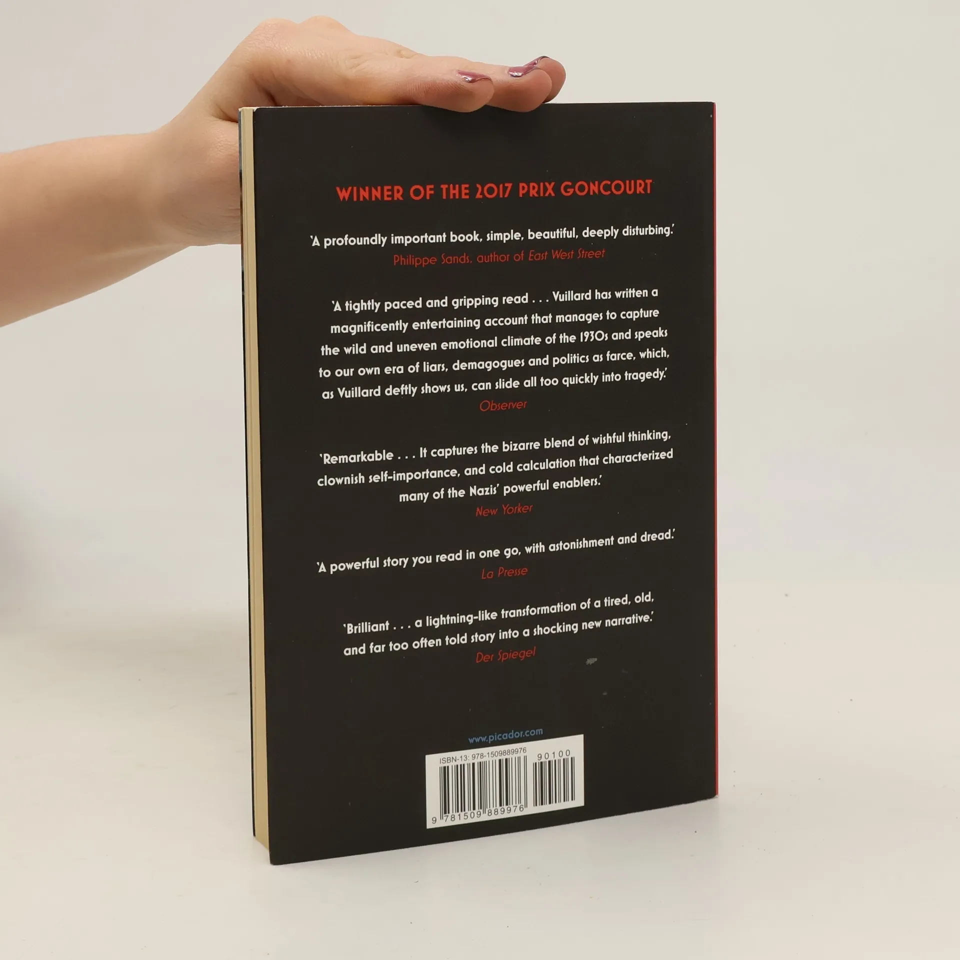 Winner of the 2017 Prix Goncourt Éric Vuillard's gripping novel The Order of the Day tells the story of the pivotal meetings which took place between the European powers in the run-up to World War Two. What emerges is a fascinating and incredibly moving account of failed diplomacy, broken relationships, and the catastrophic momentum which led to conflict. The titans of German industry - set to prosper under the Nazi government - gather to lend their support to Adolf Hitler. The Austrian Chancellor realizes too late that he has wandered into a trap, as Hitler delivers the ultimatum that will lay the groundwork for Germany's annexation of Austria. Winston Churchill joins Neville Chamberlain for a farewell luncheon held in honour of Joachim von Ribbentrop: German Ambassador to England, soon to be Foreign Minister in the Nazi government, and future defendant at the Nuremberg trials. Suffused with dramatic tension, this unforgettable novel tells the tragic story of how the actions of a few powerful men brought the world to the brink of war.