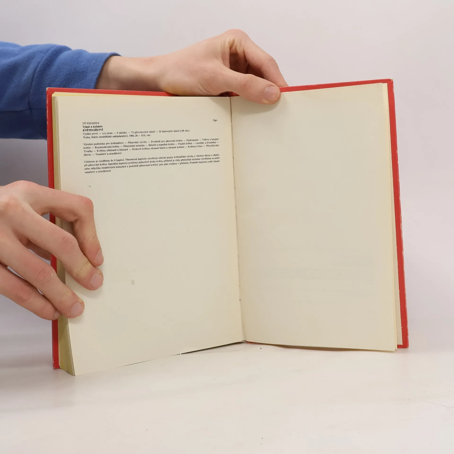 Učebnice je rozdělena do 12 kapitol. Obecné pojmy a hlavní pěstitelské zásahy jsou vysvětleny v částech o řízení techniky a ve výrobních podmínkách květinářské výroby. Ve speciální části jsou probrány hlavní druhy venkovních i skleníkových květin. Pěstitelská technika je vysvětlena na modelových kulturách, podobně pěstované rostliny jsou probrány stručně. Závěrem jsou uvedeny zásady vazačství a aranžování i návody k provádění praktických cvičení.