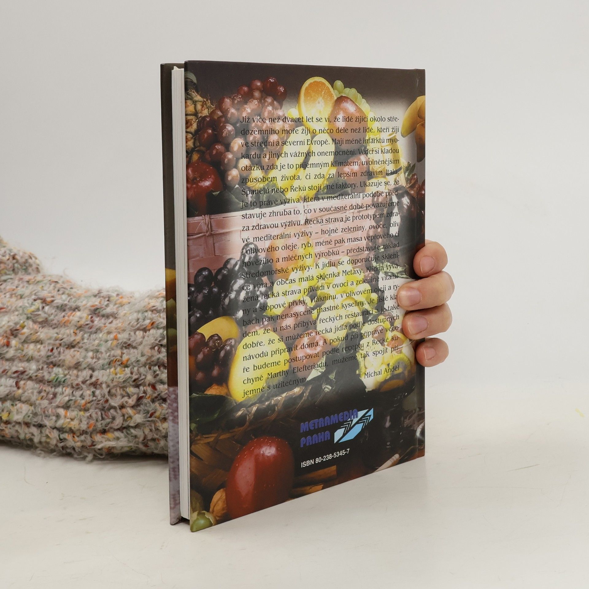 Kulinářská tradice a kultura řeckého stolování v minulosti i dnes. Neměnné a charakteristické složky a ingredience řecké kuchyně (byliny a koření), nejznámější řecká jídla a nejčastější řecké omáčky a polevy. Přehled receptů na typické řecké předkrmy, polévky, saláty, pilafy. Nejrůznější recepty a způsoby přípravy masa, zeleninových jídel, ryb a plodů moře, ovocných zavařenin a sladkých moučníků. Nechybí ani výklad o přípravě a druzích kávy a stručný přehled řeckých vín.