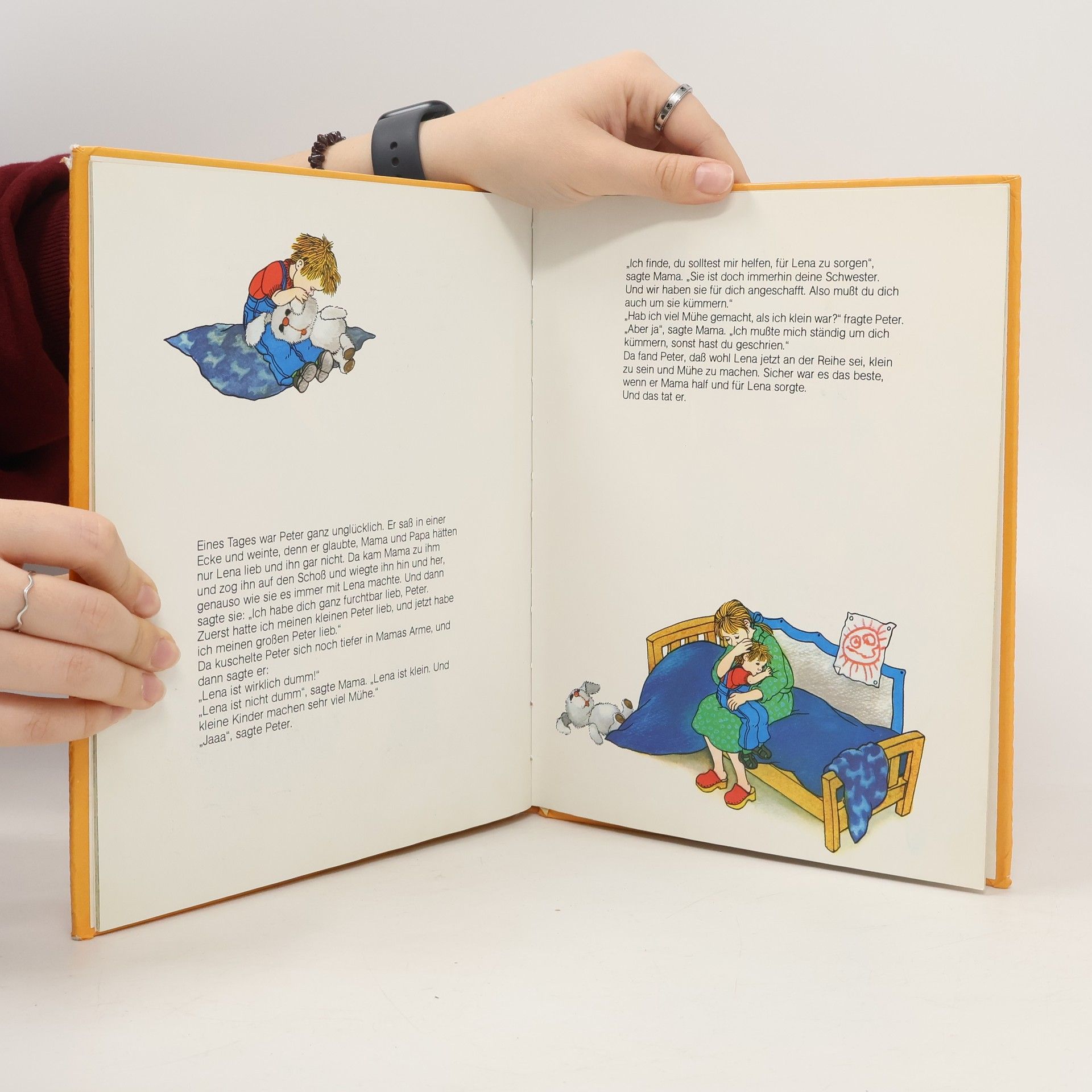 In Astrid Lindgrens herzerwärmender Geschichte „Ich will auch Geschwister haben“ sehnt sich Peter nach einem Geschwisterchen, inspiriert von den Erlebnissen seines Freundes Jan. Doch als sein Wunsch mit der Geburt seiner kleinen Schwester Lena in Erfüllung geht, findet er sich in einem emotionalen Wirrwarr wieder. Anfangs begeistert, kämpft Peter bald mit Eifersucht und dem Gefühl, von seinen Eltern weniger geliebt zu werden. Die Erzählung nimmt die Leser mit auf Peters Reise durch die Höhen und Tiefen des Geschwisterdaseins, seine Streiche, um Aufmerksamkeit zu erlangen, und sein Ringen mit der neuen Familienkonstellation. Lindgren gelingt es meisterhaft, die innere Welt eines Kindes, das sich plötzlich geteilter elterlicher Liebe gegenübersieht, einzufangen und bietet eine tiefgründige, zugleich humorvolle Reflexion über Familie, Liebe und das Großwerden. Emotionale Tiefe: Lindgrens unvergleichliches Talent, kindliche Gefühlswelten authentisch darzustellen, macht dieses Buch zu einem wertvollen Lesestoff für junge Familien. Wichtige Themen : Behandelt Themen wie Eifersucht, Familienzusammenhalt und die Anpassung an Veränderungen im Familienleben auf kindgerechte Weise. Für Vor- und Selbstleser geeignet : Einfühlsame und lebensnahe Erzählweise, die sowohl zum Vorlesen für jüngere Kinder als auch als Lektüre für Erstleser dient. Regt zum Gespräch an: Bietet zahlreiche Anknüpfungspunkte für Gespräche zwischen Eltern und Kindern über Gefühle und Veränderungen in der Familie. Klassische Illustrationen : Die Illustrationen von Ilon Wikland ergänzen die Geschichte perfekt und verleihen ihr zusätzliche Wärme und Charme. Zeitloses Lindgren-Werk: Wie alle Geschichten von Astrid Lindgren bleibt auch diese Erzählung ein zeitloser Klassiker, der Generationen von Kindern und Eltern anspricht. Perfektes Geschenk : Ideal als Geschenk für Familien, die Zuwachs erwarten oder bereits erlebt haben, und als Hilfsmittel, um ältere Geschwister auf das neue Familienmitglied vorzubereiten.