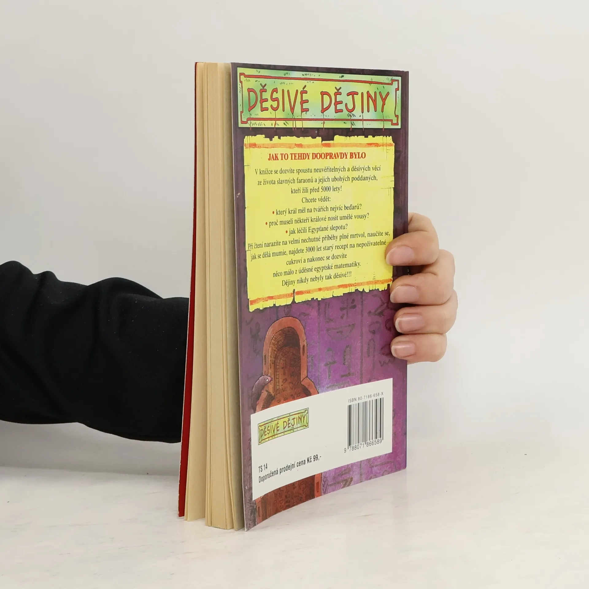 Jak to tehdy doopravdy bylo! V knížce se dozvíte spoustu neuvěřitelných a děsivých věcí ze života slavných faraonů a jejich ubohých poddaných, kteří žili před 5000 lety! Chcete vědět: . který král měl na tvářích nejvíc beďarů? . proč museli někteří králové nosit umělé vousy? . jak léčili Egypťané slepotu? Při čtení narazíte na velmi nechutné příběhy plné mrtvol, naučíte se, jak se dělá mumie, najdete 3000 let starý recept na nepoživatelné cukroví a nakonec se dozvíte něco málo z úděsné egyptské matematiky. Dějiny,nikdy nebyly tak děsivé!!!... celý text