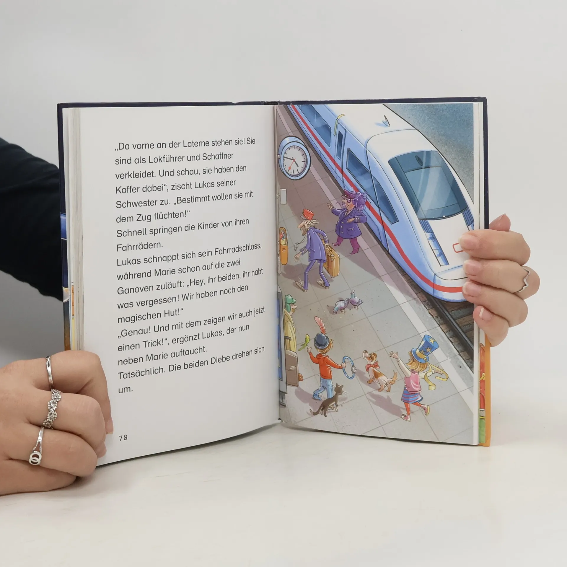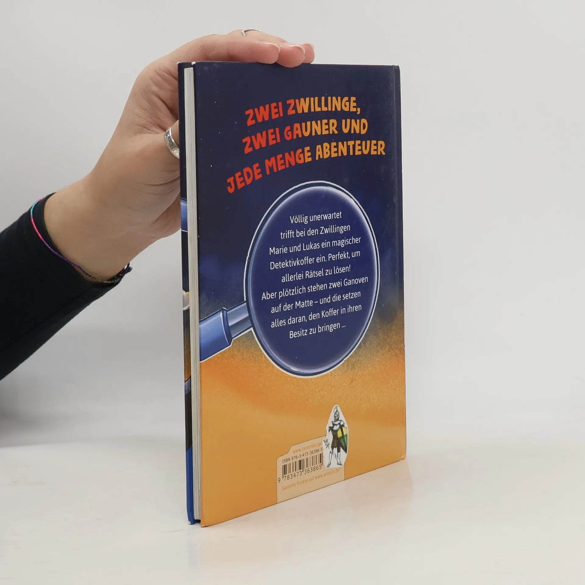Überraschung! Zu ihrem siebten Geburtstag bekommen die Zwillinge Lukas und Marie einen geheimnisvollen Koffer geschenkt. Darin enthalten ist alles, was richtige Detektive brauchen: Eine Lupe, ein Fernglas, ein Stadtplan und vieles mehr. Doch schon bald stellt sich heraus, dass die Gegenstände im Koffer magische Fähigkeiten haben! Und auch ein tollpatschiges Ganovenpärchen ist hinter dem Koffer her... Ein geheimnisvoller Koffer aus Übersee steht im Mittelpunkt der neuen Erstlesereihe von Cally Stronk. Die Zwillinge Marie und Lukas bekommen ihn an ihrem siebten Geburtstag von ihrer Tante aus Übersee geschickt. Was hat es mit dem Koffer auf sich? Und warum sollen die Zwillinge vor Groß und Klein auf der Hut sein? Schon bald stellt sich heraus, dass die Gegenstände im Koffer magische Fähigkeiten haben! Doch auch ein tollpatschiges Ganovenpärchen ist hinter dem Koffer her... Damit beginnt eine abenteuerliche Jagd nach dem magischen Detektivkoffer! Und das Beste: Die Leser können den Zwillingen bei der Jagd nach dem Koffer behilflich sein, indem sie die im Buch enthaltenen Bilderrätsel lösen. Ideal zum Lesenlernen für alle Krimifans und Rätselknacker!