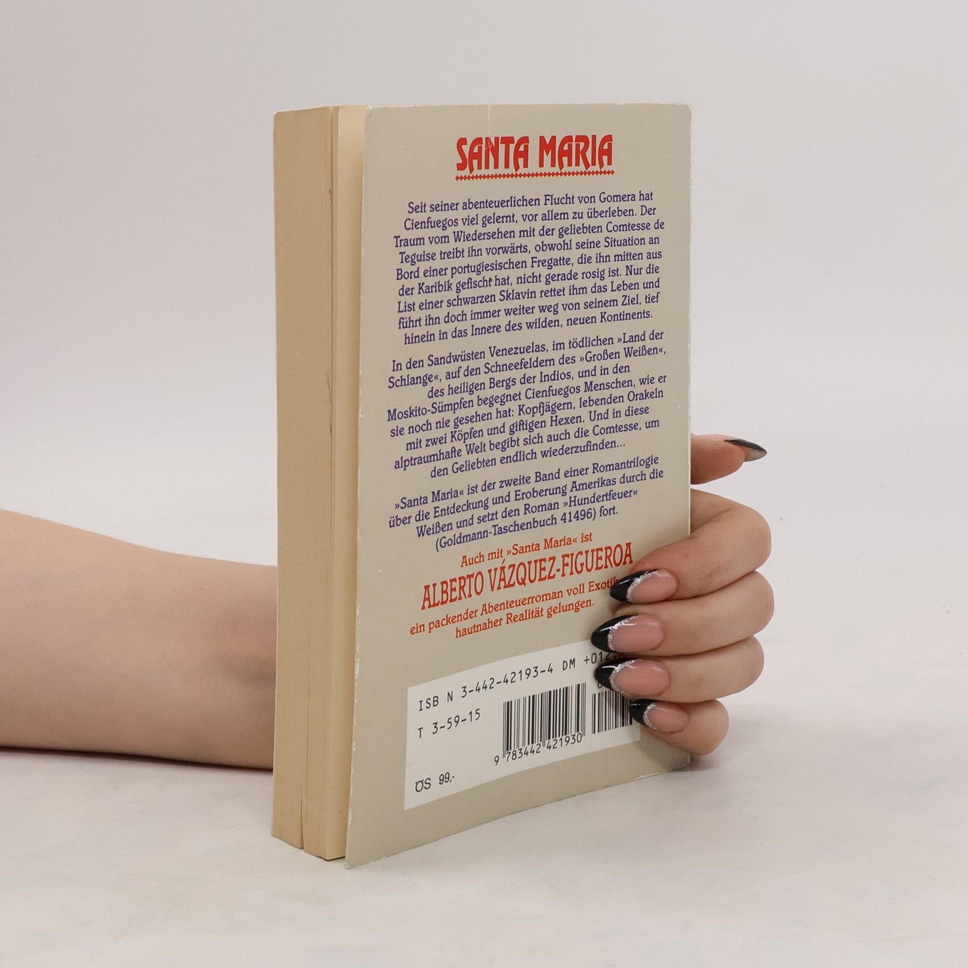 Kolumbus und der Kampf um die Herrschaft über die Neue Welt Kühne Träume, Mutige Irrtümer, grausame Niederlagen -die Entdeckung der Neuen Welt begann wie ein exotischer Abenteuerroman. Doch der Kampf um die unermeßlichen Länder jenseits des Ozeans geht weiter, und aus den Eroberern werden Gejagte. Intrigen, Neid und offene Rebellion beenden den Siegeszug der SANTA MARIA Und Cienfuegos, der Ziegenhirte mit den roten Haaren, gerät zwischen die Fronten. Seine alptraumhafie Flucht durch den fremden, faszinierenden Kontinent ist der einzige Ausweg. Der Roman des spanischen Erzählers Alberto Väzquez-Figueroa, Autor des TUAREG
