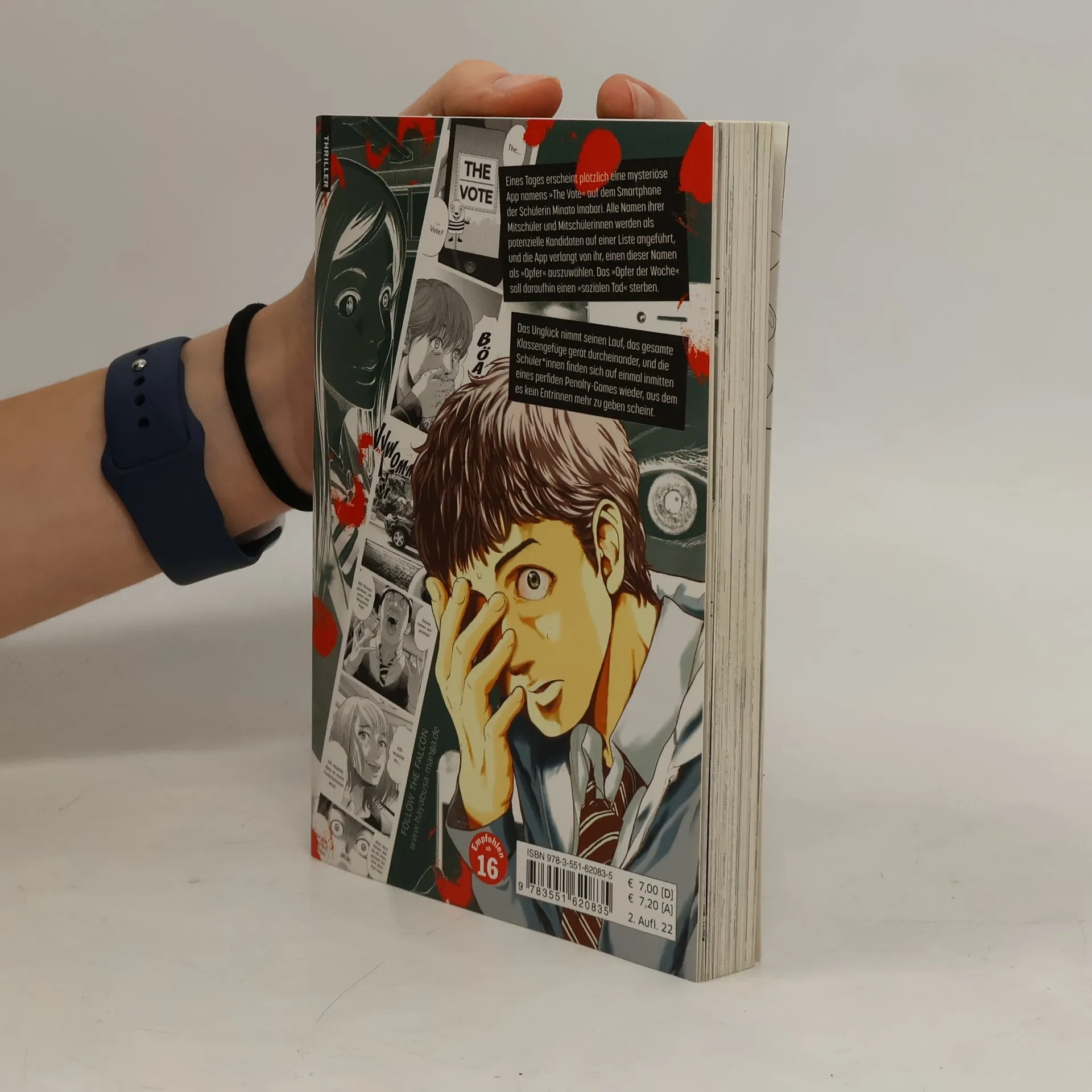 Japan, Yanagizawa-Privatschule – eigentlich eine Schule wie jede andere. Die Schüler*innen genießen das moderne Leben der Generation Smartphone. Minato ist neu und versucht sich in das bestehende Klassengefüge zu integrieren. Eines Abends ploppt auf Minatos Smartphone eine ihr unbekannte App auf: The Vote ! Ein virtuelles Spiel, dessen Teilnehmer alle aus Minatos Klasse sind. Von nun an muss jeder Schüler am Vorabend einen anderen Mitschüler auswählen, der eine Aufgabe lösen soll, andernfalls droht dem Auserwählten der »soziale Tod« – gleichbedeutend mit der Zerstörung seines gesellschaftlichen Lebens. Anfangs schenken die wenigsten der App ernsthafte Beachtung, bis es zu einem höchst dramatischen Zwischenfall kommt, der allen Beteiligten auf einen Schlag klar macht, dass The Vote keine normale App ist, sondern ein gnadenlos pervertiertes Spiel um Leben und Tod! The Vote ist provokant, polarisiert und erzeugt einen enormen Spannungsbogen. Hinter den teils gewaltigen Schock- und Schreckmomenten lauert ein latentes gesellschaftskritisches Grundrauschen, das unseren Umgang mit den neuen Medien infrage stellt. Die teils bizarren Charaktere mit all ihren Geheimnissen, das emotionale Artwork und die überraschenden Plot-Twists machen die Serie zu einem Psychothriller der grenzüberschreitenden Art.