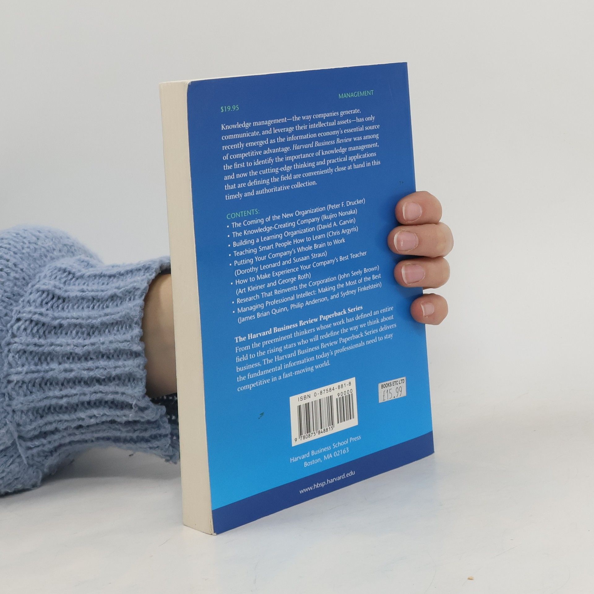 Leading Minds and Landmark Ideas In An Easily Accessible FormatFrom the preeminent thinkers whose work has defined an entire field to the rising stars who will redefine the way we think about business, The Harvard Business Review Paperback Series delivers the fundamental information today's professionals need to stay competitive in a fast-moving world.The eight articles in Harvard Business Review on Knowledge Management highlight the leading-edge thinking and practical applications that are defining the field of knowledge management. Includes Peter Drucker's prophetic The Coming of the New Organization and Ikujiro Nonaka's Knowledge-Creating Company. A Harvard Business Review Paperback.