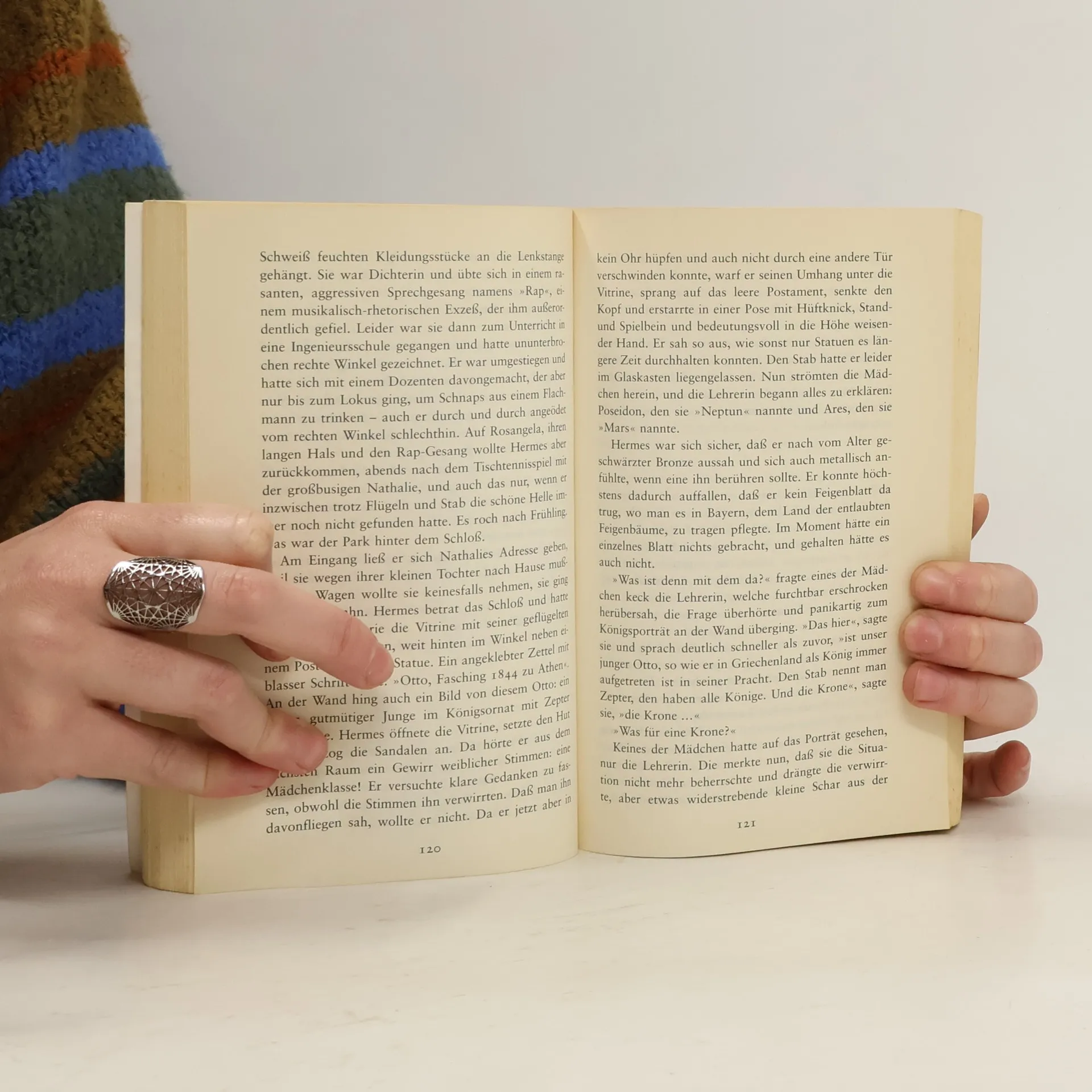 In Sten Nadolnys Roman ist Hermes, Gott der Kreuzwege und der Nacht, der Diebe und Kaufleute, der Held. Nach über 2000jähriger Gefangenschaft wird er vom neurotischen Technologie-Gott Hephäst befreit. Der erste Mensch, der ihm nach seiner Befreiung auf Santorin begegnet, ist die junge Helga aus Stendal in Sachsen-Anhalt, für die sich Hermes gleich entflammt. Diese befindet sich auf einer Kreuzfahrt, und Hermes folgt ihr, selbst über den Atlantik. Auf den Reisen lernt er nicht nur die Angebetete besser kennen, sondern macht sich auch seinen Reim auf die Veränderungen, die die Welt in den letzten 2000 Jahren erfahren hat.