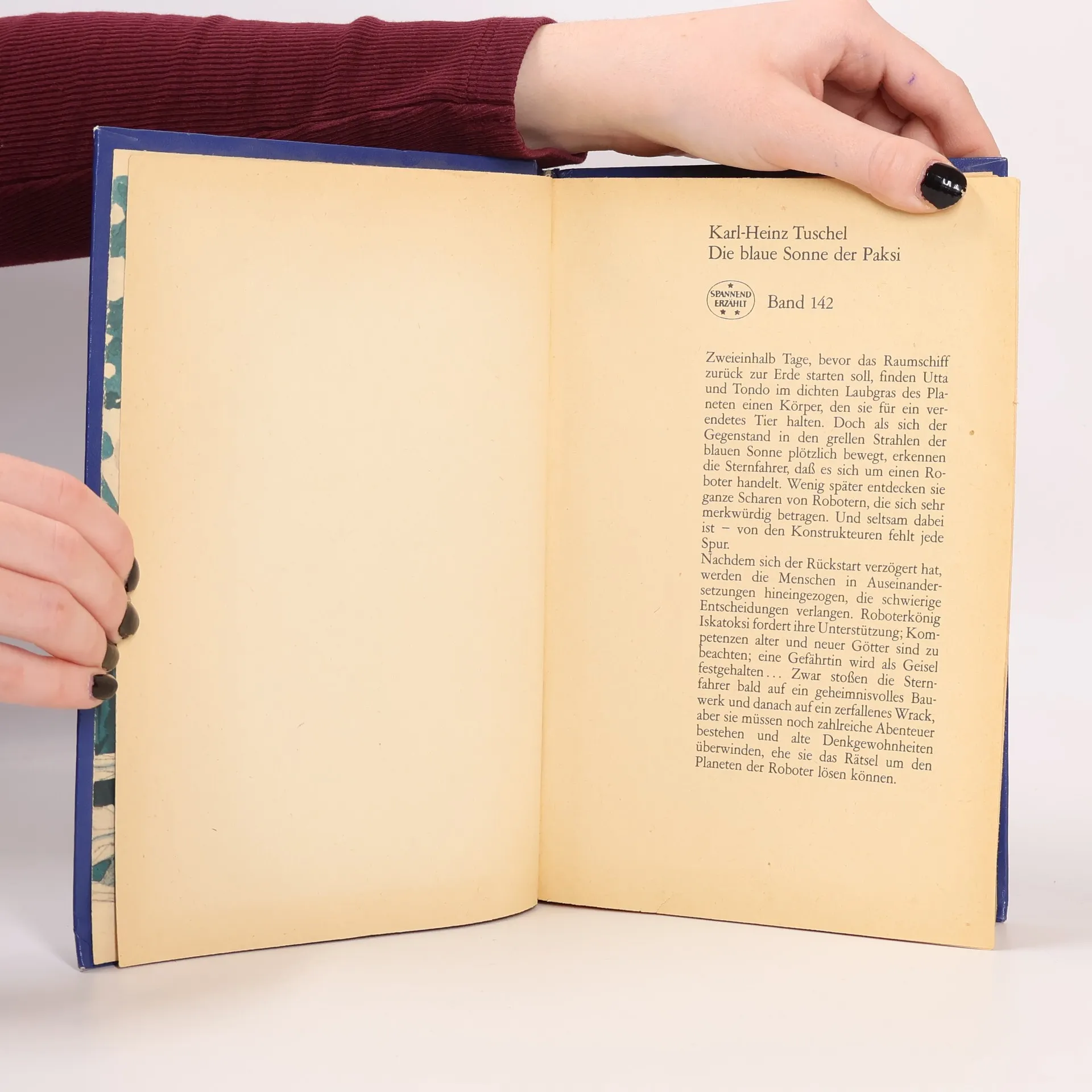 Wissenschaftlich-phantastischer Roman Zweieinhalb Tage, bevor das Raumschiff zurück zur Erde starten soll, finden Utta und Tondo im dichten Laubgras des Planeten einen Körper, den sie für ein verendetes Tier halten. Doch als sich der Gegenstand in den grellen Strahlen der blauen Sonne plötzlich bewegt, erkennen die Sternfahrer, daß es sich um einen Roboter handelt. Wenig später entdecken sie ganze Scharen von Robotern, die sich sehr merkwürdig betragen. Und seltsam dabei ist - von den Konstrukteuren fehlt jede Spur. Nachdem sich der Rückstart verzögert hat, werden die Menschen in Auseinandersetzungen hineingezogen, die schwierige Entscheidungen verlangen. Roboterkönig Iskatoksi fordert ihre Unterstützung; Kompetenzen alter und neuer Götter sind zu beachten; eine Gefährtin wird als Geisel festgehalten ... Zwar stoßen die Sternfahrer bald auf ein geheimnisvolles Bauwerk und danach auf ein zerfallenes Wrack, aber sie müssen noch zahlreiche Abenteuer bestehen und alte Denkgewohnheiten überwinden, ehe sie das Rätsel um den Planeten der Roboter lösen können.