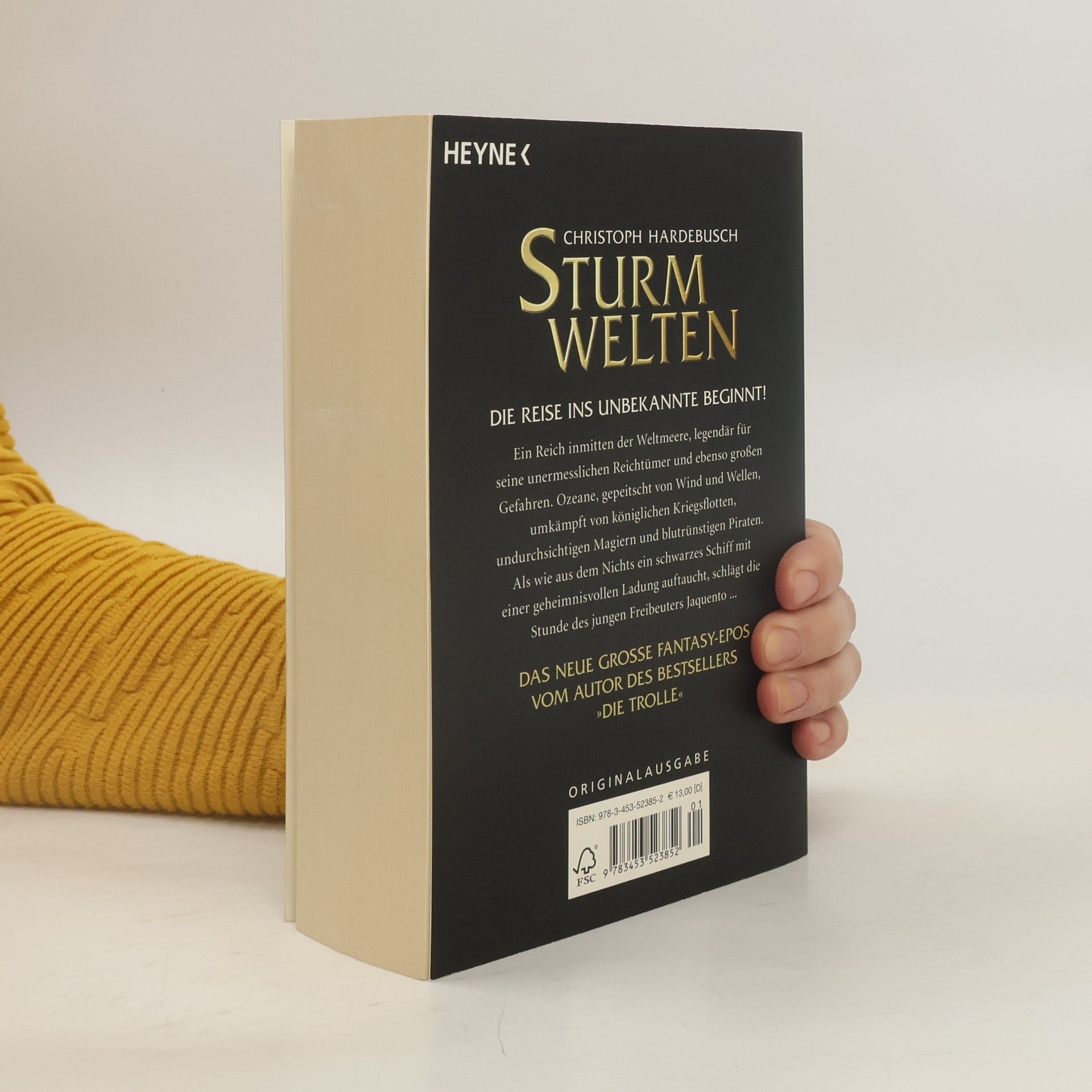 Sturmwelten – der neue Christoph Hardebusch! Ein Reich inmitten der Weltmeere, besiedelt von riesigen Meeresschildkröten, feuerspeienden Drachen und schillernden Wassermagiern. Stürmische Ozeane, gepeitscht von Wind und Wellen, befahren von kaiserlichen Armeen, blutrünstigen Piraten und geheimnisvollen Zauberern. Als wie aus dem Nichts ein legendäres Kolonialschiff mit einer magischen Ladung auftaucht, schlägt die Stunde des Freibeuters Jaquento – und es beginnt ein Wettlauf mit der Zeit. Mit seiner grandiosen epischen Fantasy-Saga vor nautischem Hintergrund prägt der junge Erfolgsautor die neue Generation der Fantasy.