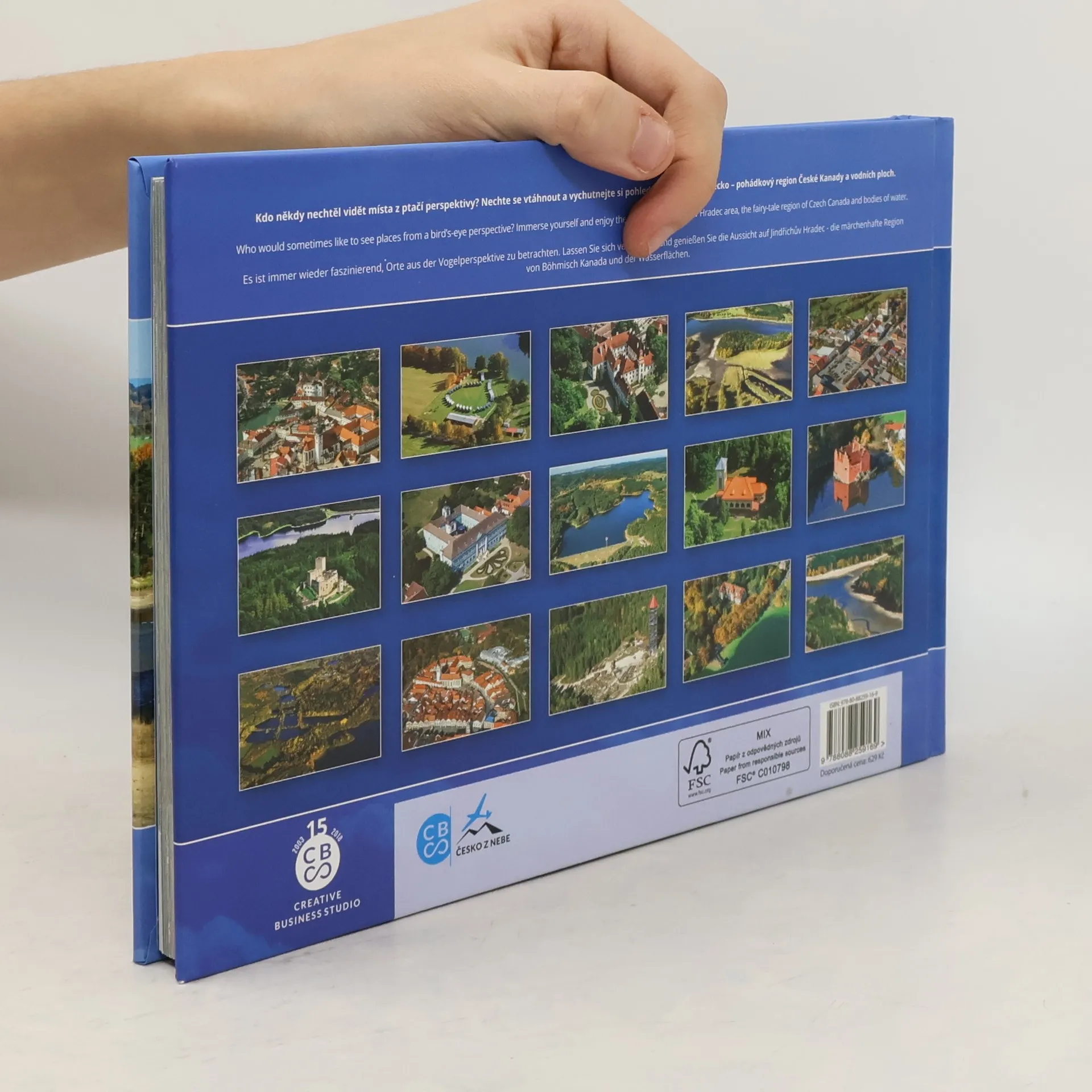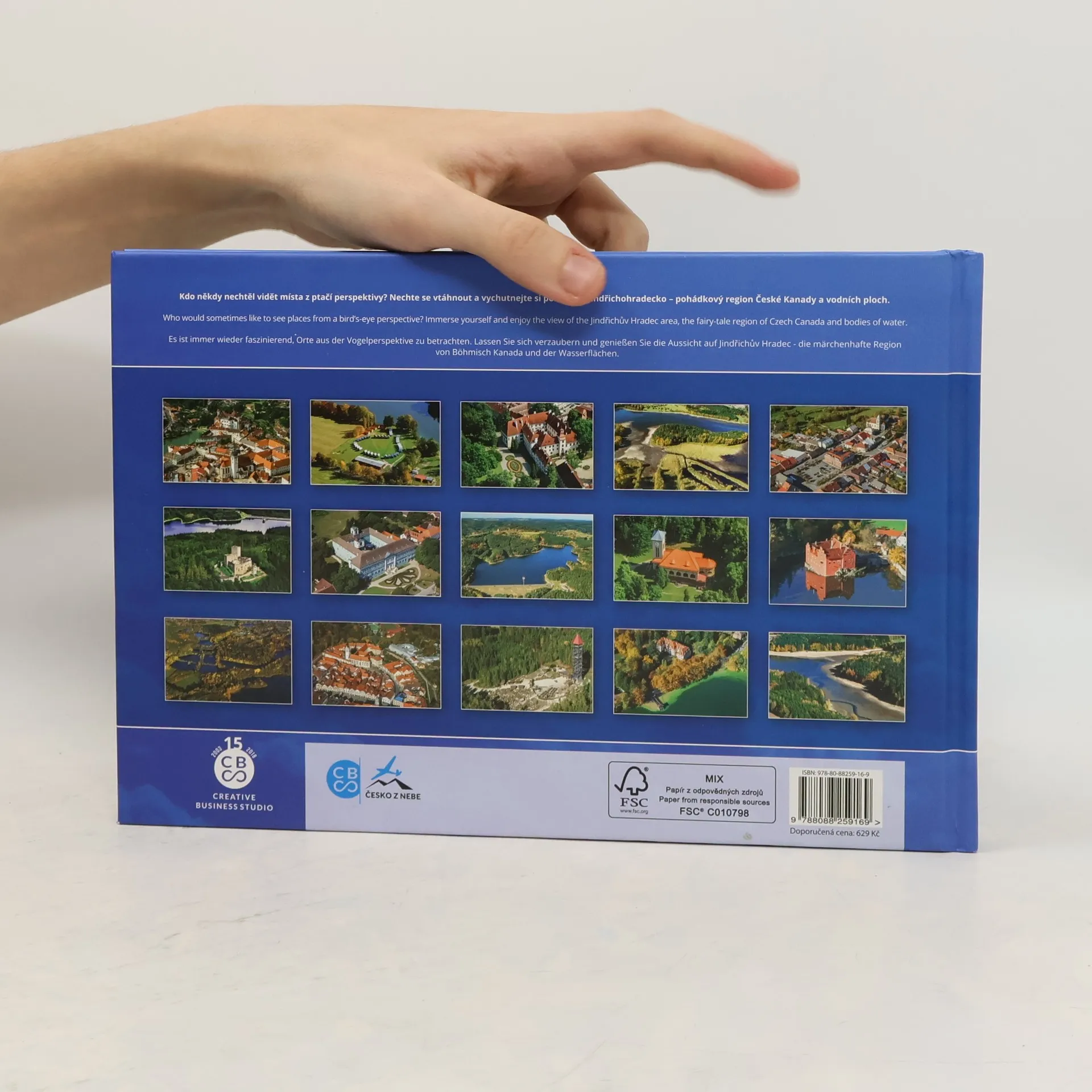 Jindřichohradecko neboli Česká Kanada - tento nádherný kraj vás uchvátí pohledem na krajinu plnou lesů, jezer a historických architektonických skvostů. Na řadě zámků a hradů se budete cítit přímo pohádkově. V této knize se můžete pokochat pohledy z výšky například na zámky Stráž nad Nežárkou, Kardašova Řečice, Červená Lhota, Pluhův Žďár, Český Rudolec, Dačice nebo Staré Hobzí, prohlédnout si malebné obce, města a rozsáhlé rybníky a vodní nádrže jako Kačlehy, Landštějn, Holná, Hejtman, Velký Tisý, Ponědražský a Rožmberk. Na leteckých fotografiích najdete určitě mnoho míst, které možná dobře znáte, ale nyní se na tyto místa můžete podívat doslova "s nadhledem".