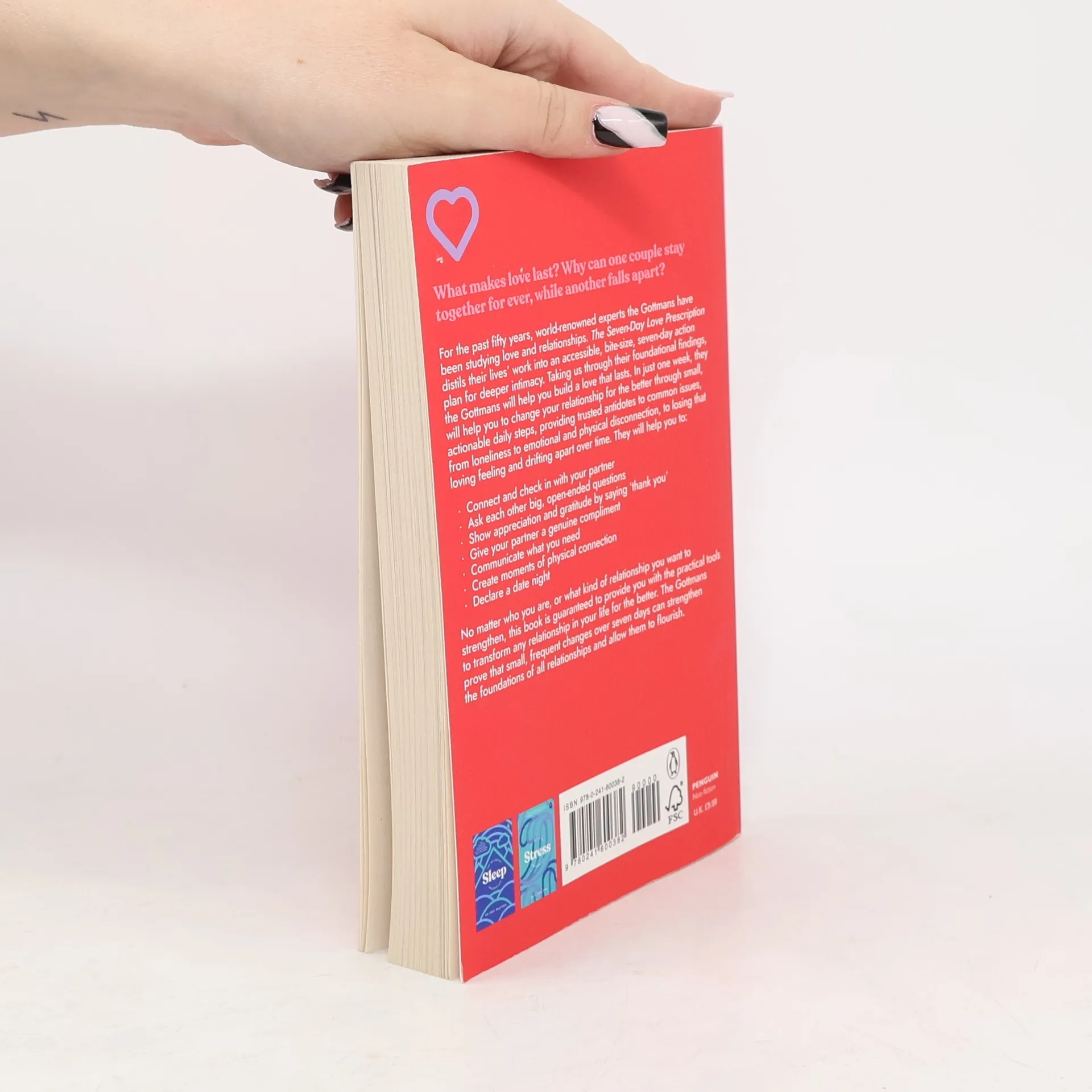 How can you revive and renew your relationship in just seven days? For the past fifty years, Drs. John and Julie Gottman have been studying love. This book distils their work into an accessible, bite-size, seven-day action plan for deeper intimacy. Taking you through their most foundational findings, the Gottmans will help you build a love that lasts in just seven days. Through small, immediately actionable daily steps, they will help you to shift your relationship for the better, providing trusted antidotes to common issues from loneliness and emotional and physical disconnection, to drifting apart and losing that loving feeling. These will teach you how to- Connect and check in with each other Ask each other big, open-ended questions Show appreciation and gratitude by saying thank you Give your partner a genuine compliment Communicate what you need Create moments of physical connection Declare a date night No matter who you are, or what kind of relationship you want to strengthen, The Seven-Day Love Prescription is guaranteed to provide you with the practical tools to transform any relationship in your life for the better. The Gottmans prove that small frequent changes over just seven days can strengthen the foundations of all relationships, allow them to flourish, and create big, long-lasting change over time.