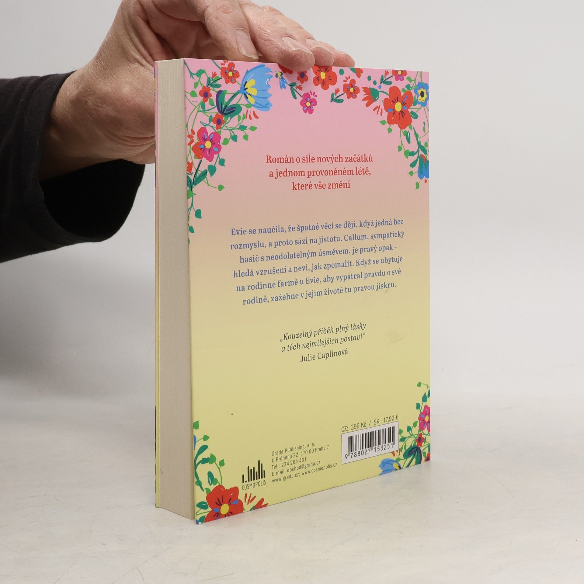 Evie se naučila, že špatné věci se dějí, když jedná bez rozmyslu, a proto sází na jistotu. Callum, sympatický hasič s neodolatelným úsměvem, je pravý opak – hledá vzrušení a neví, jak zpomalit. Když se ubytuje na rodinné farmě u Evie, aby vypátral pravdu o své rodině, zažehne v jejím životě tu pravou jiskru. „Kouzelný příběh plný lásky a těch nejmilejších postav.“ Julie Caplinová