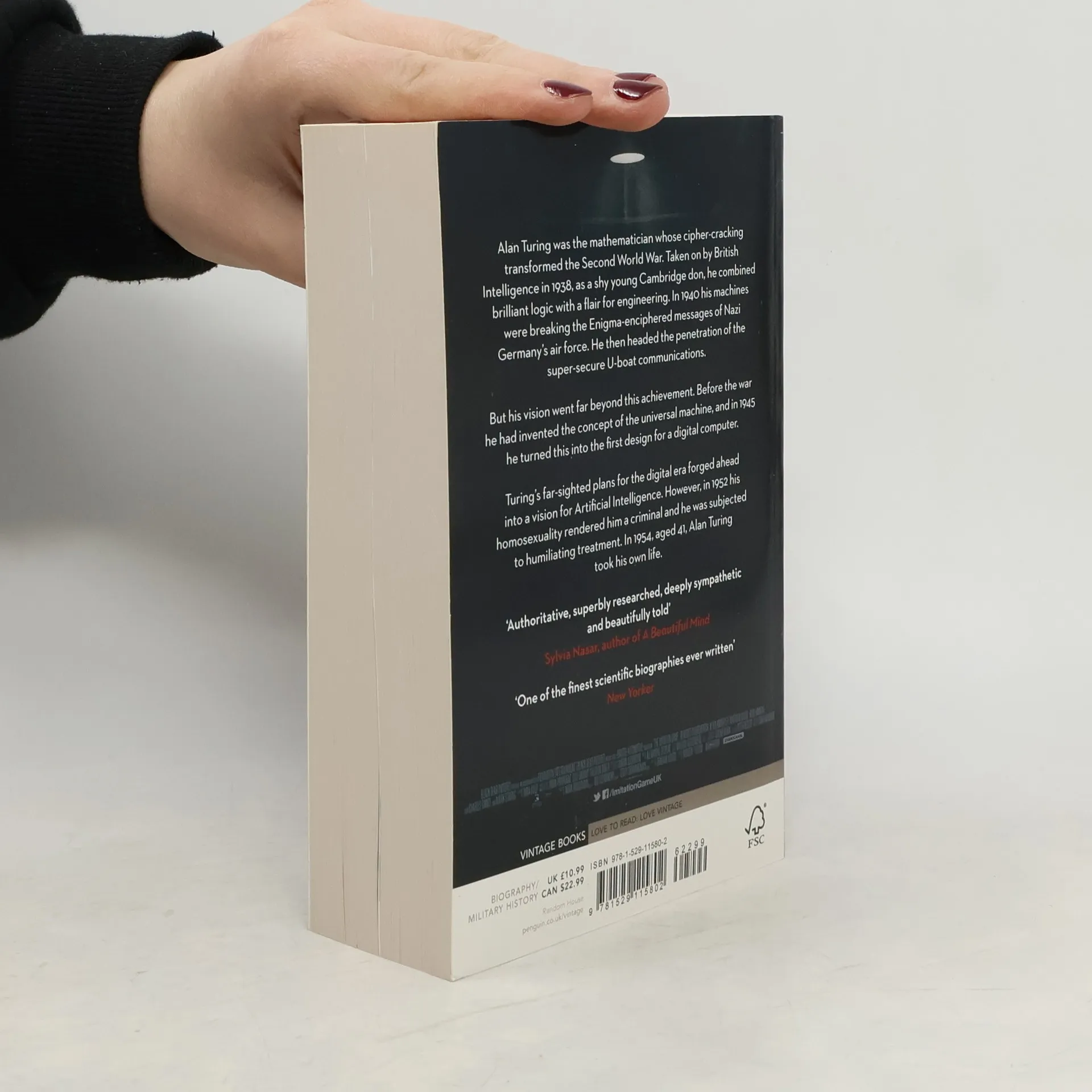 The official book behind the Academy Award-winning film The Imitation Game, starring Benedict Cumberbatch and Keira Knightley Alan Turing was the mathematician whose cipher-cracking transformed the Second World War. Taken on by British Intelligence in 1938, as a shy young Cambridge don, he combined brilliant logic with a flair for engineering. In 1940 his machines were breaking the Enigma-enciphered messages of Nazi Germany’s air force. He then headed the penetration of the super-secure U-boat communications. But his vision went far beyond this achievement. Before the war he had invented the concept of the universal machine, and in 1945 he turned this into the first design for a digital computer. Turing's far-sighted plans for the digital era forged ahead into a vision for Artificial Intelligence. However, in 1952 his homosexuality rendered him a criminal and he was subjected to humiliating treatment. In 1954, aged 41, Alan Turing took his own life.