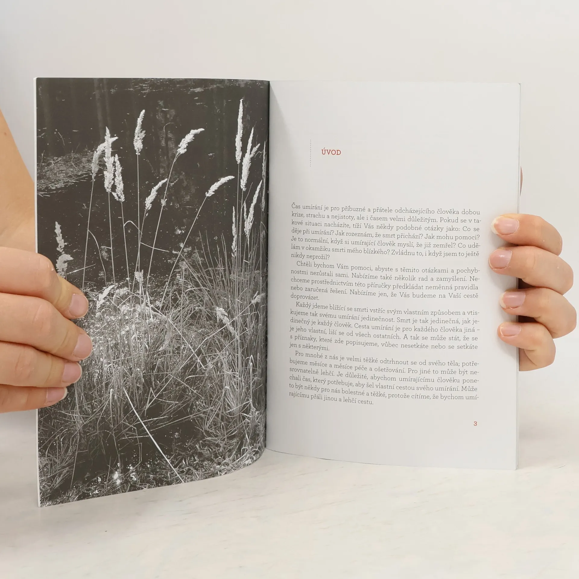 Text útlé knihy podává základní informace o tom, jak může vypadat poslední úsek cesty životem, jak umírající člověk odchází, co ho čeká, jak ho můžeme při umírání doprovázet, jak pečovat o jeho výživu, hygienu a další tělesní potřeby, ale také o jeho potřeby duševní a duchovní. Knížka je osvědčeným pomocníkem, pomůže odstraňovat zbytečné obavy a nejistotu. Je vyhledávaná nejen pečujícími členy rodiny a blízkými přáteli, ale i odborníky z pečujících profesí.