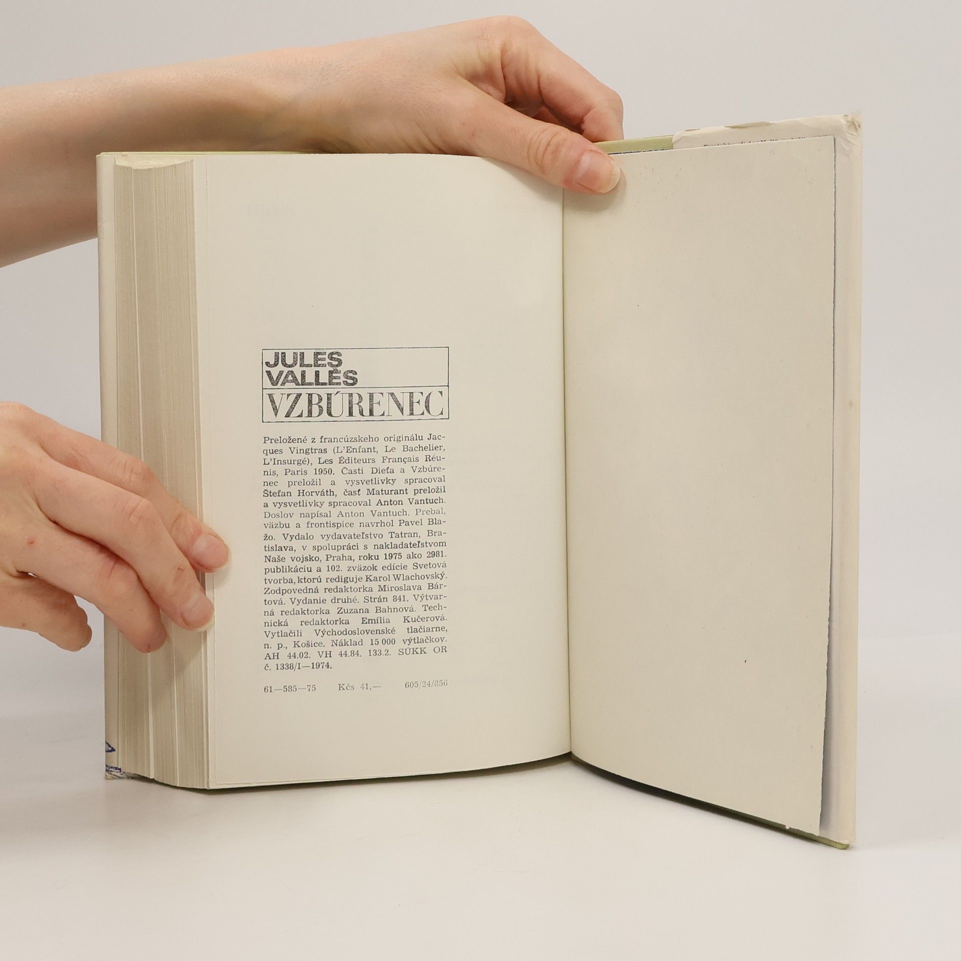 Historicko-autobiografický román - trilógia. Kniha obsahuje všetky tri časti. Autor, účastník Komúny bol odsúdený na smrť v neprítomnosti. Prvý diel sa nazýva Dieťa, druhý Maturant a tretí Vzbúrenec vyšiel až po jeho smrti. Vykresľuje v ňom neradostnú mladosť s prchkým otcom profesorom amatkou sedliačkou, ktorí poznali iba výchovu korbáčom. Zároveň podáva obraz nešťastnej a zároveň smelej generácie rokov 1848-71. 2. slovenské vydanie.