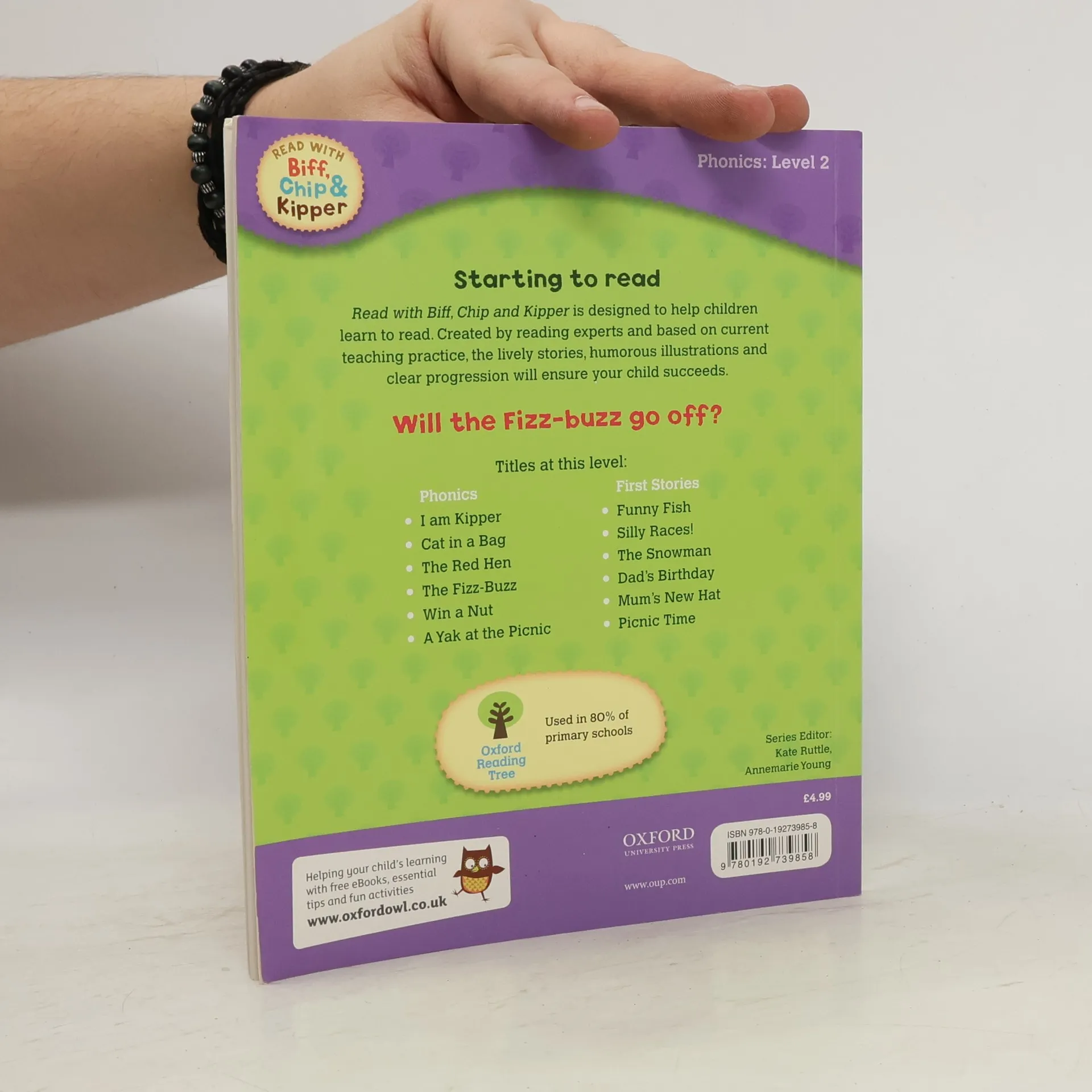 Read With Biff, Chip and Kipper is the UK's best-selling home reading series. It is based on Oxford Reading Tree which is used in 80% of primary schools. Read With Biff, Chip and Kipper Level 2 Phonics storybooks have been specially written to allow children to practise their letters and sounds as they do at school. Fun plots, familiar characters and carefully levelled text create the perfect combination to build children's confidence and enjoyment of reading. Level 2 practises single letter sounds like 'f' and two letters that make one sound such as 'ff' and combining those sounds to read simple one and two syllable words. These sounds are introduced at Level 2: s a t p i n m d g o c k ck e u r h b f ff l ll ss j x y z zz. Each book includes two stories as well as practical tips and ideas for you to use when you reading with your child and fun activities. This series also provides essential support for parents through www.oxfordowl.co.uk . Visit the Oxford Owl for practical advice, all you need to know about phonics and lots of fun activities and free eBooks. With plenty of support available inside the book and online phonics practice at home has never been so fun or so easy!