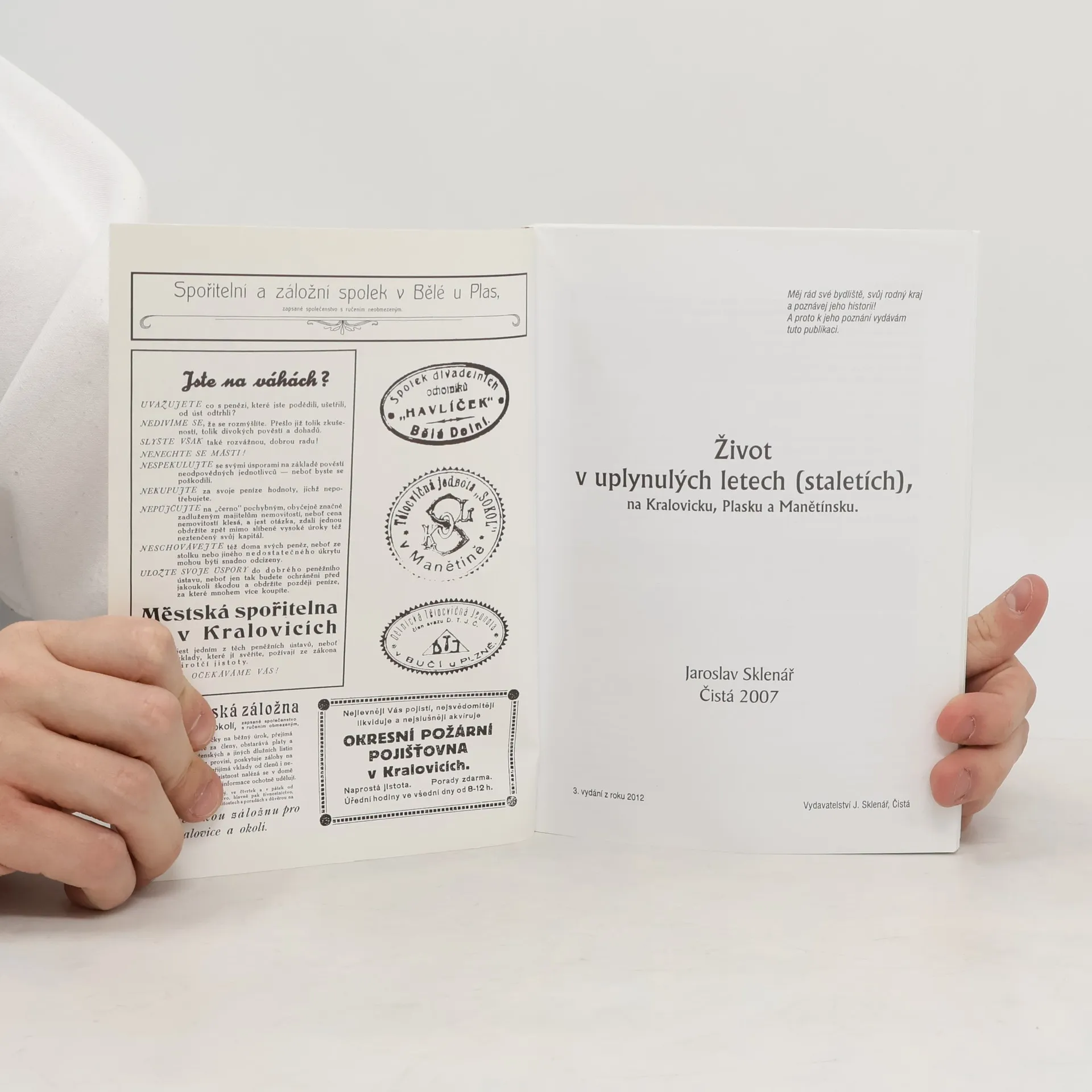 Život v uplynulých letech (staletích) na Kralovicku, Plasku a Manětínsku, Jaroslav Sklenář