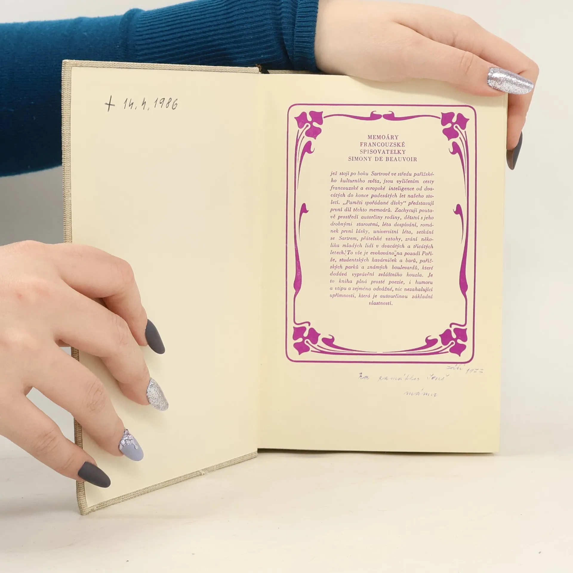 První díl memoárů francouzské spisovatelky, která v nich na pozadí Paříže dvacátých a třicátých let zachycuje prostředí své rodiny, své dětství s drobnými starostmi, léta dospívání, příběh první lásky, univerzitní léta, setkání se Sartrem, přátelské vztahy, zrání několika mladých lidí. Kniha plná poezie i humoru a vtipu, zavádějící do pařížských studentských kavárniček a barů, do pařížských parků a známých boulevardů.