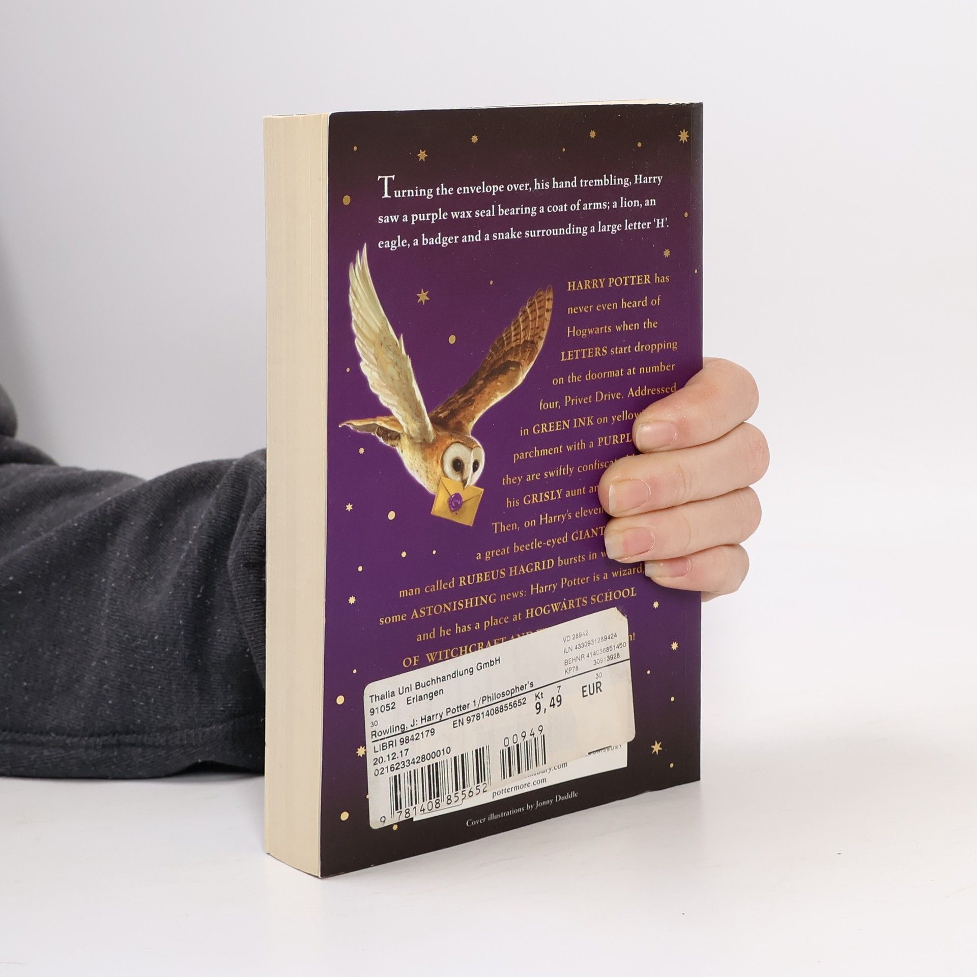 Harry Potter has never even heard of Hogwarts when the letters start dropping on the doormat at number four, Privet Drive. Addressed in green ink on yellowish parchment with a purple seal, they are swiftly confiscated by his grisly aunt and uncle. Then, on Harry's eleventh birthday, a great beetle-eyed giant of a man called Rubeus Hagrid bursts in with some astonishing news: Harry Potter is a wizard, and he has a place at Hogwarts School of Witchcraft and Wizardry. An incredible adventure is about to begin!These new editions of the classic and internationally bestselling, multi-award-winning series feature instantly pick-up-able new jackets by Jonny Duddle, with huge child appeal, to bring Harry Potter to the next generation of readers. It's time to PASS THE MAGIC ON .