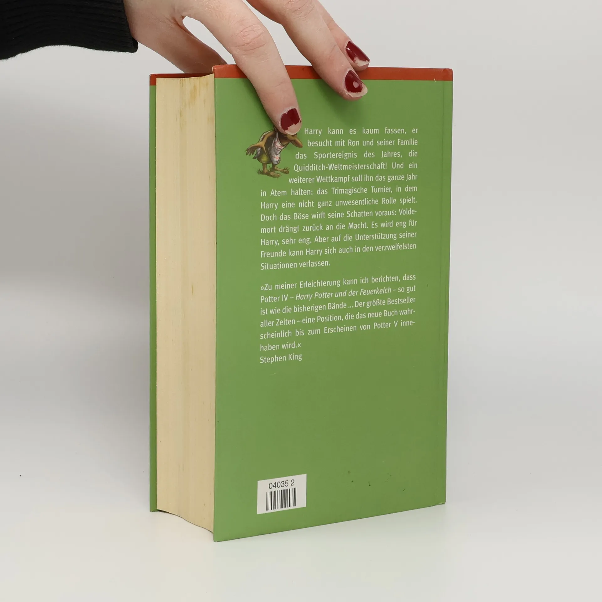 Das vierte Schuljahr in Hogwarts beginnt für Harry. Doch davor steht noch ein sportliches Großereignis, das die scheußlichen Sommerferien vergessen lässt: die Quidditch-Weltmeisterschaft. Und ein weiterer Wettkampf wird die Schüler das ganze Schuljahr über beschäftigen: das Trimagische Turnier, in dem Harry eine Rolle übernimmt, die er sich im Traum nicht vorgestellt hätte. Natürlich steckt dahinter das Böse, das zurück an die Macht drängt: Lord Voldemort. Es wird eng für Harry, sehr eng. Doch seine Freunde und ihre Unterstützung kann Harry sich auch in verzweifelten Situationen verlassen.