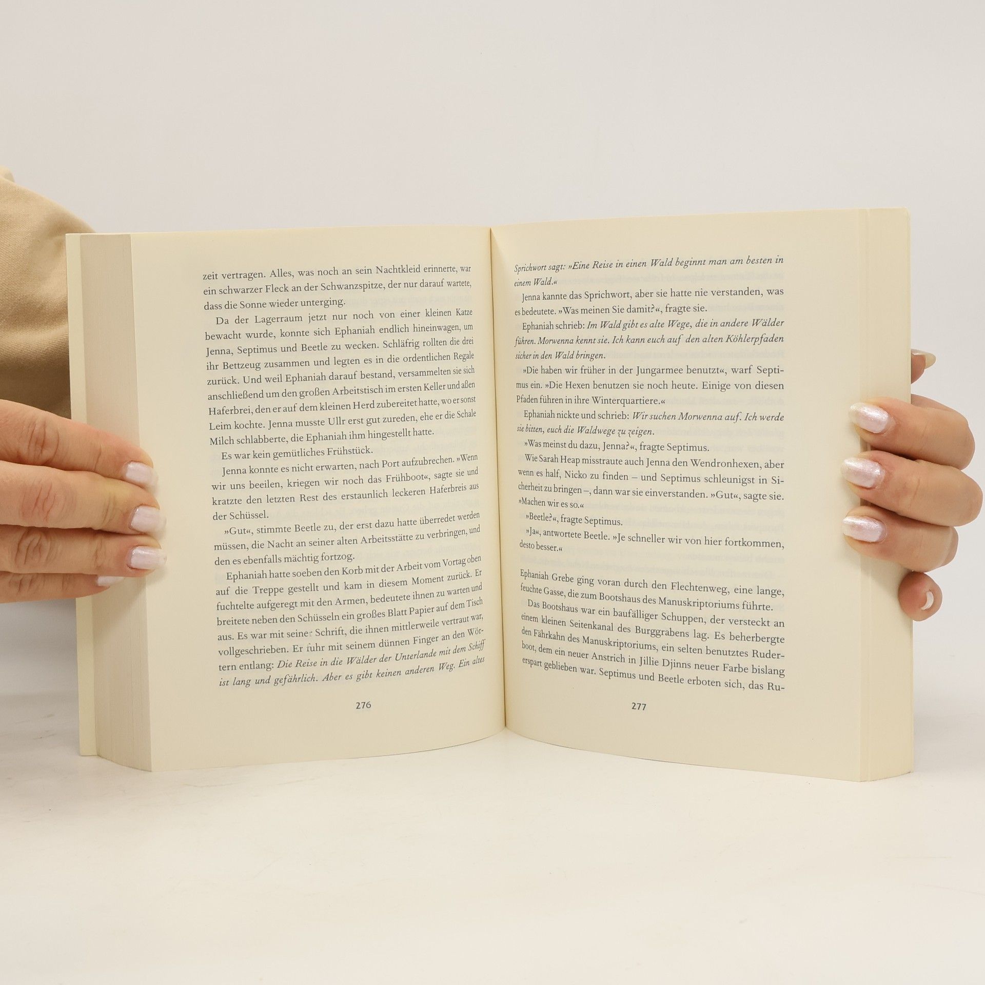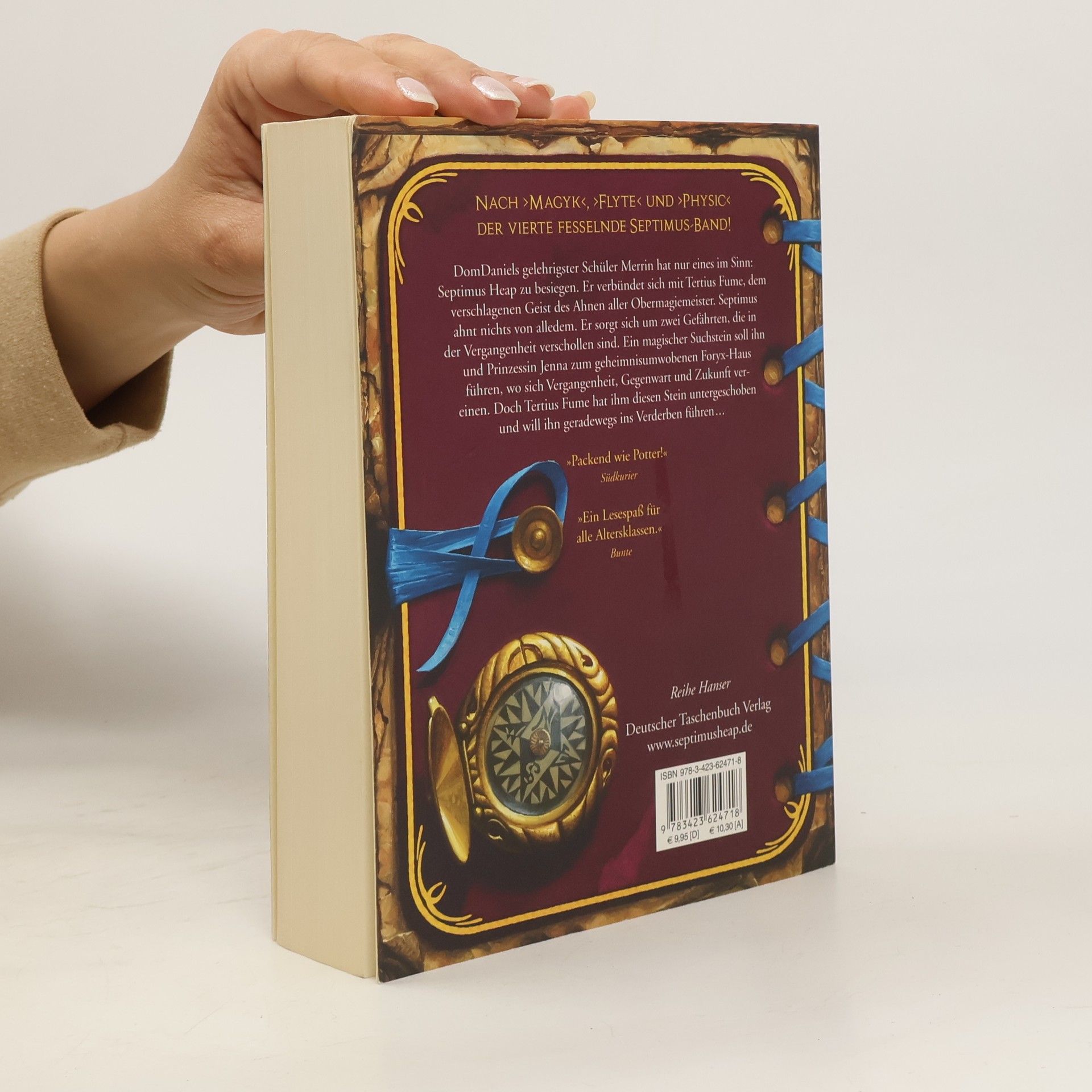 Der vierte Band der Bestseller-Reihe Wieder braut sich Unheil über Septimus Heap und der Burg zusammen. DomDaniels gelehriger Schüler ist unbemerkt aus den Ödlanden zurückgekehrt. Merrin Meredith heißt er, beherrscht die schwarze Magie so gut wie sein Lehrmeister und hat nur eines im Sinn: Septimus Heap zu besiegen. Als Verbündeten in der Burg gewinnt er Tertius Fume, den verschlagenen Geist des Ahnen aller Obermagiemeister. Septimus ahnt nichts von der Gefahr, sondern sorgt sich um zwei Gefährten, die in der Vergangenheit verschollen sind. Mit Prinzessin Jenna bricht er auf, um sie zu retten. Er weiß nicht, dass ihm sein magischer Suchstein von Tertius Fume untergeschoben wurde, um ihn geradewegsins Verderben zu führen...