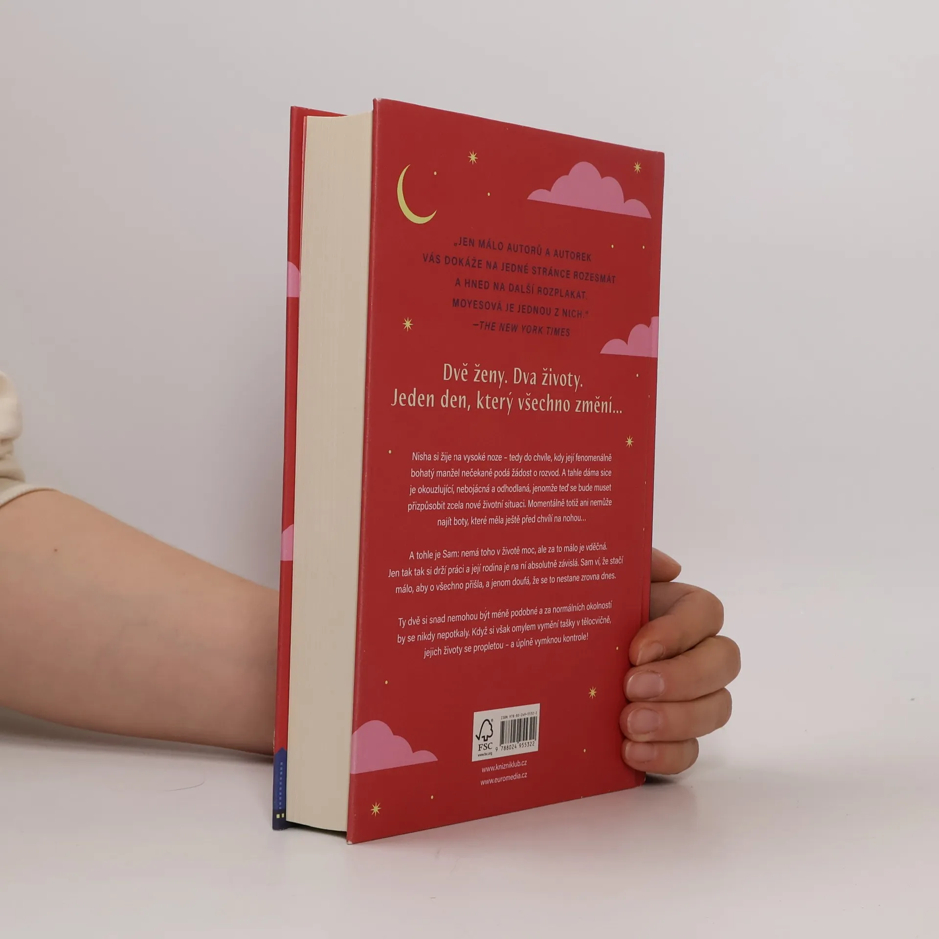 Seznamte se se Sam. Nemá toho moc, ale za to málo je vděčná: jen tak tak si drží svou práci a její rodina je na ni ve všech ohledech závislá. Ví, že ji jeden špatný den dělí od toho, aby o všechno přišla, a jenom doufá, že to nebude dnes… A tohle je Nisha. Má všechno, o čem vždycky snila, její manžel je fenomenálně bohatý a ona si žije na vysoké noze… tedy až do chvíle, kdy její muž podá žádost o rozvod. Sam a Nisha se nikdy neměly potkat. Ale když si omylem vymění tašky v tělocvičně, jejich životy se propletou – a úplně vymknou kontrole…
