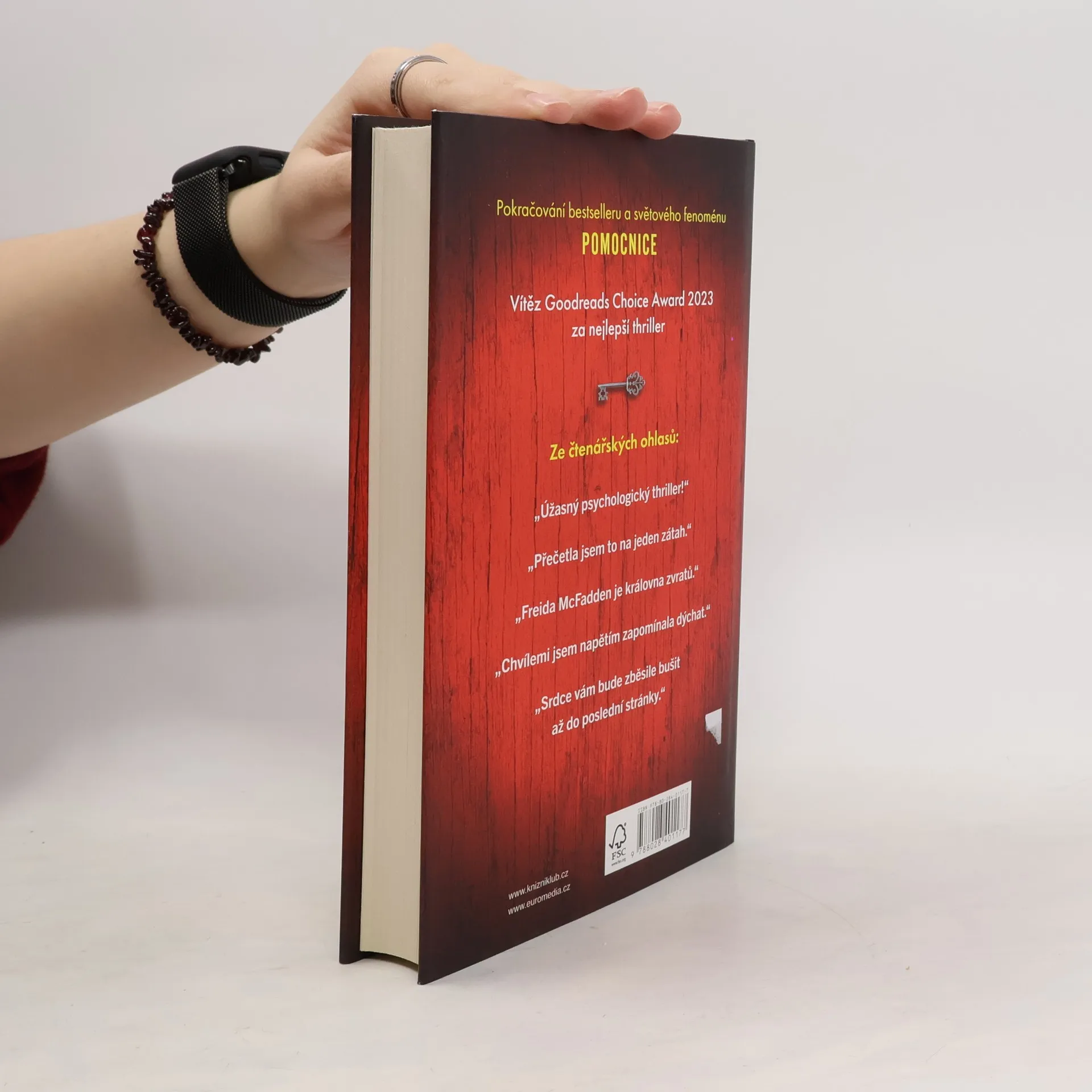 Pokračování bestselleru Pomocnice! Je těžké najít zaměstnavatele, který se nebude příliš vyptávat na mou minulost. A tak děkuji svým šťastným hvězdám, že jsem získala místo u Garrickových. Chvíli tu můžu v klidu pracovat, dokud nedostanu, co chci. Je to téměř dokonalé. Jenže jsem se pořád ještě nesetkala s paní Garrickovou ani se nepodívala do pokoje pro hosty. Jsem si jistá, že ji tam slýchávám plakat. Při praní prádla si taky všimnu skvrn od krve kolem límečku její noční košile. Takže si jednoho dne už nemůžu pomoct a na dveře zaklepu. Jakmile se pomalu otevřou, spatřím za nimi něco, co všechno změní…