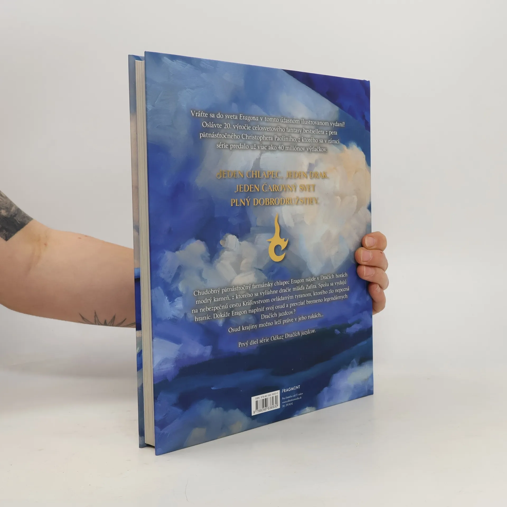 Prekrásne ilustrované vydanie k 20. výročiu fenomenálnej fantasy, ktorá pobláznila svet! Vráťte sa do sveta Eragona v tomto úžasnom ilustrovanom vydaní! Oslávte 20. výročie celosvetového fantasy bestsellera z pera pätnásťročného Christophera Paoliniho, z ktorého sa v rámci série predalo už viac ako 40 miliónov výtlačkov. Jeden chlapec, jeden drak, jeden čarovný svet plný dobrodružstiev. Chudobný pätnásťročný farmársky chlapec Eragon nájde v Dračích horách modrý kameň, z ktorého sa vyliahne dračie mláďa Zafira. Spolu sa vydajú na nebezpečnú cestu Kráľovstvom ovládaným tyranom, ktorého zlo nepozná hraníc. Dokáže Eragon naplniť svoj osud a prevziať bremeno legendárnych Dračích jazdcov? Osud krajiny možno leží práve v jeho rukách... Prvý diel série Odkaz Dračích jazdcov.