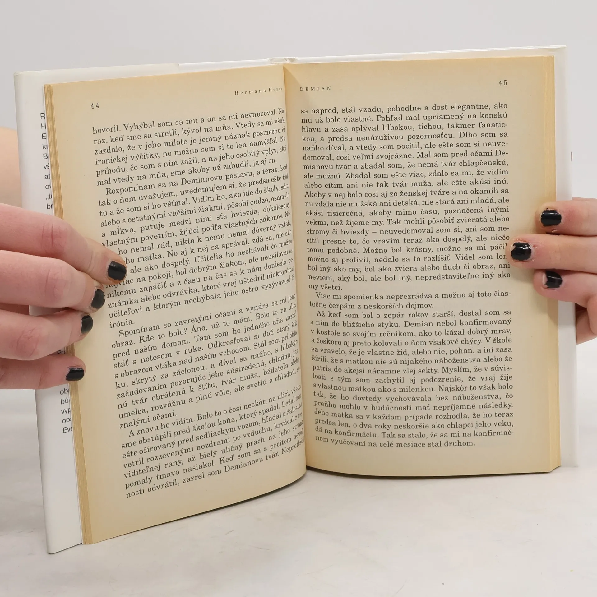 Román Demian patrí k najvýznačnejším Hesseho dielam. Jeho hlavný hrdina Emil Sinclair si ako desaťročný po prvýkrát uvedomuje rozporuplnosť života. Bezpečie rodičovského domu, v ktorom však vládne dusná malomeštiacka atmosféra, chlapca neuspokojuje - oveľa väčšmi ho pritahuje neznámy "temný svet" tých, ktorí nepatria k "dobrej spoločnosti", lebo sľubuje vzrušenie a hriešne dobrodružstvá.