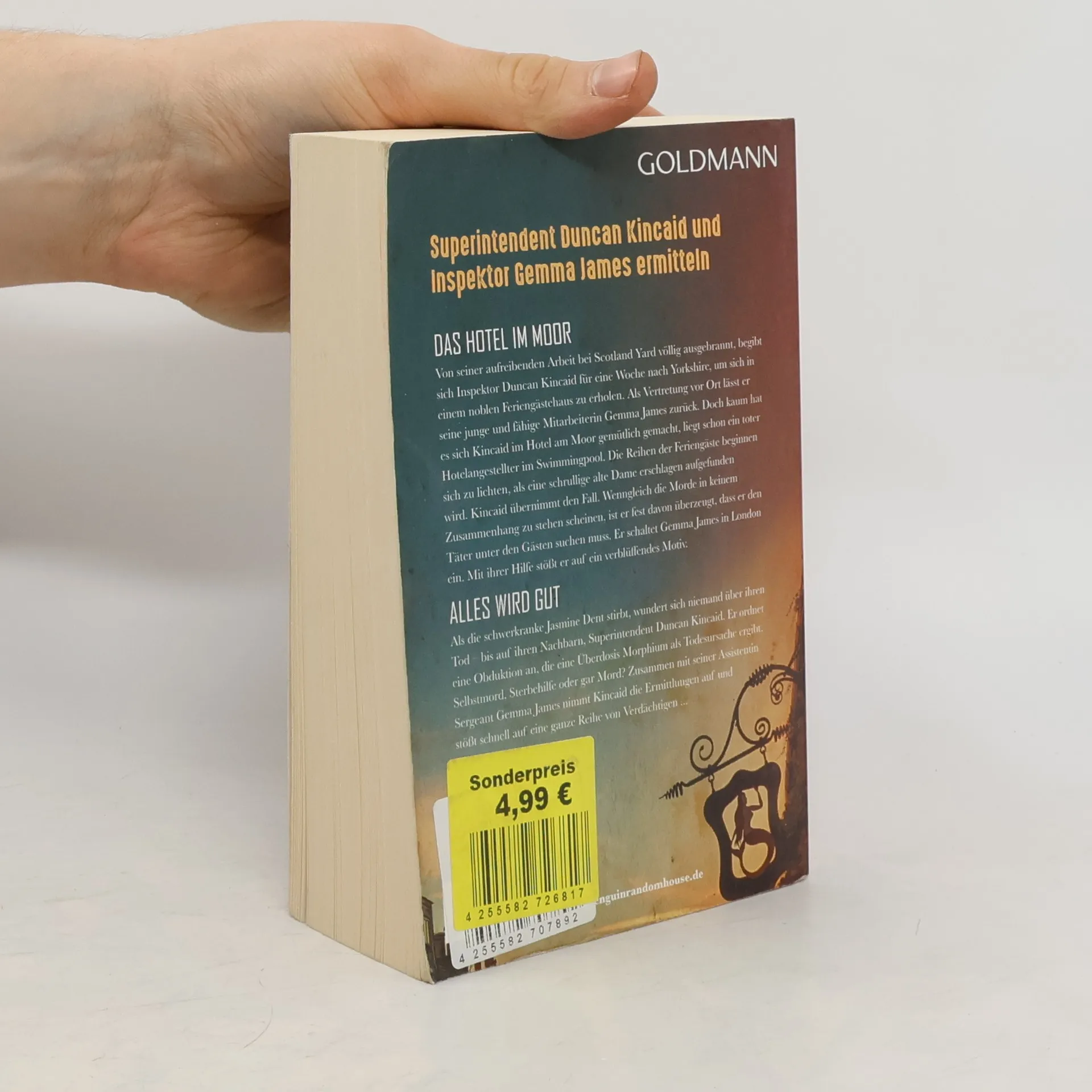 "Das Hotel im Moor": Gerade hat es sich Superintendent Duncan Kincaid mit ein paar Büchern in einem abgelegenen Hotel gemütlich gemacht, da fischt man einen toten Angestellten aus dem Pool. Alles spricht dafür, dass der Mörder unter den Hotelgästen zu finden ist. Kincaid schaltet seine Mitarbeiterin Gemma Hames ein, die verblüffende Verbindungen zwischen dem Opfer und den Verdächtigen zutage fördert. Doch da geschieht ein zweiter Mord ... "Alles wird gut": Als die schwerkranke Jasmine Dent stirbt, wundert sich niemand über ihren Tod - bis auf Superintendent Duncan Kincaid. Er ordnet eine Obduktion an, die eine Überdosis Morphium als Todesursache ergibt. Selbstmord, Sterbehilfe oder gar Mord? Zusammen mit seiner Assistentin Sergeant Gemma James nimmt Kincaid die Ermittlungen auf und stößt schnell auf eine Reihe von Verdächtigen ...