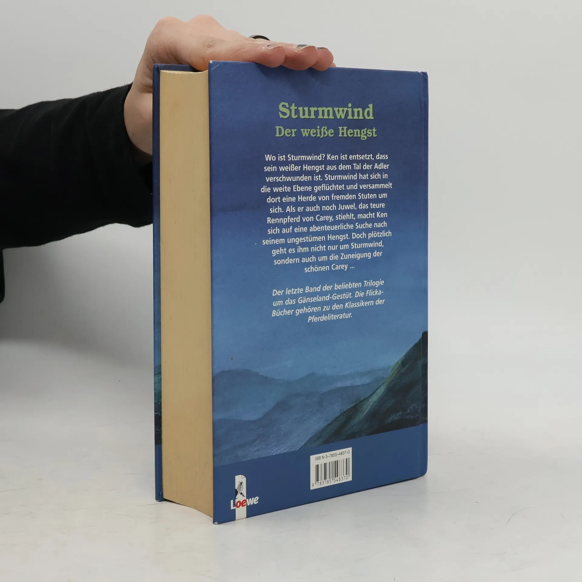 Wo ist Sturmwind? Ken ist entsetzt, dass sein weißer Hengst aus dem Tal der Adler verschwunden ist. Sturmwind hat sich in die weite Ebene geflüchtet und versammelt eine Herde von fremden Stuten um sich. Als er auch noch Juwel, das teure Rennpferd von Carey, stiehlt, macht Ken sich auf eine abenteuerliche Suche nach seinem ungestümen Hengst. Doch plötzlich geht es ihm nicht nur um Sturmwind, sondern auch um die Zuneigung der schönen Carey. Der letzte Band der beliebten Trilogie um das Gänseland-Gestüt. Die Flicka-Bücher gehören zu den Klassikern der Pferdeliteratur.
