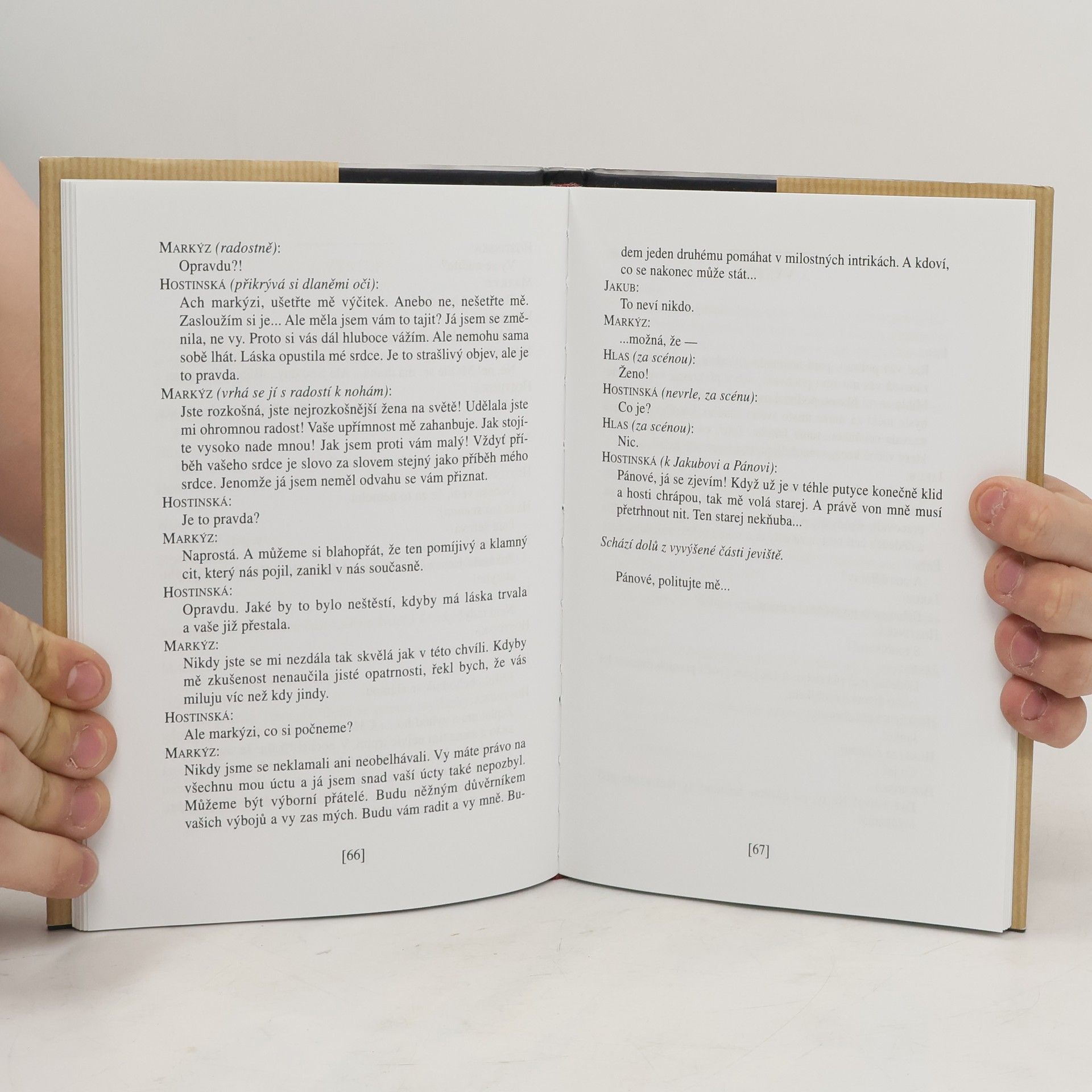 Znamenitá a úspěšná dramatizace Diderotova Jakuba Fatalisty, hravá i krutá studie proměn lidského osudu v neprohlédnutelném světě, je jediný autorův dramatický text patřící k dílům, která „má bez výhrad rád a chce vydávat“.