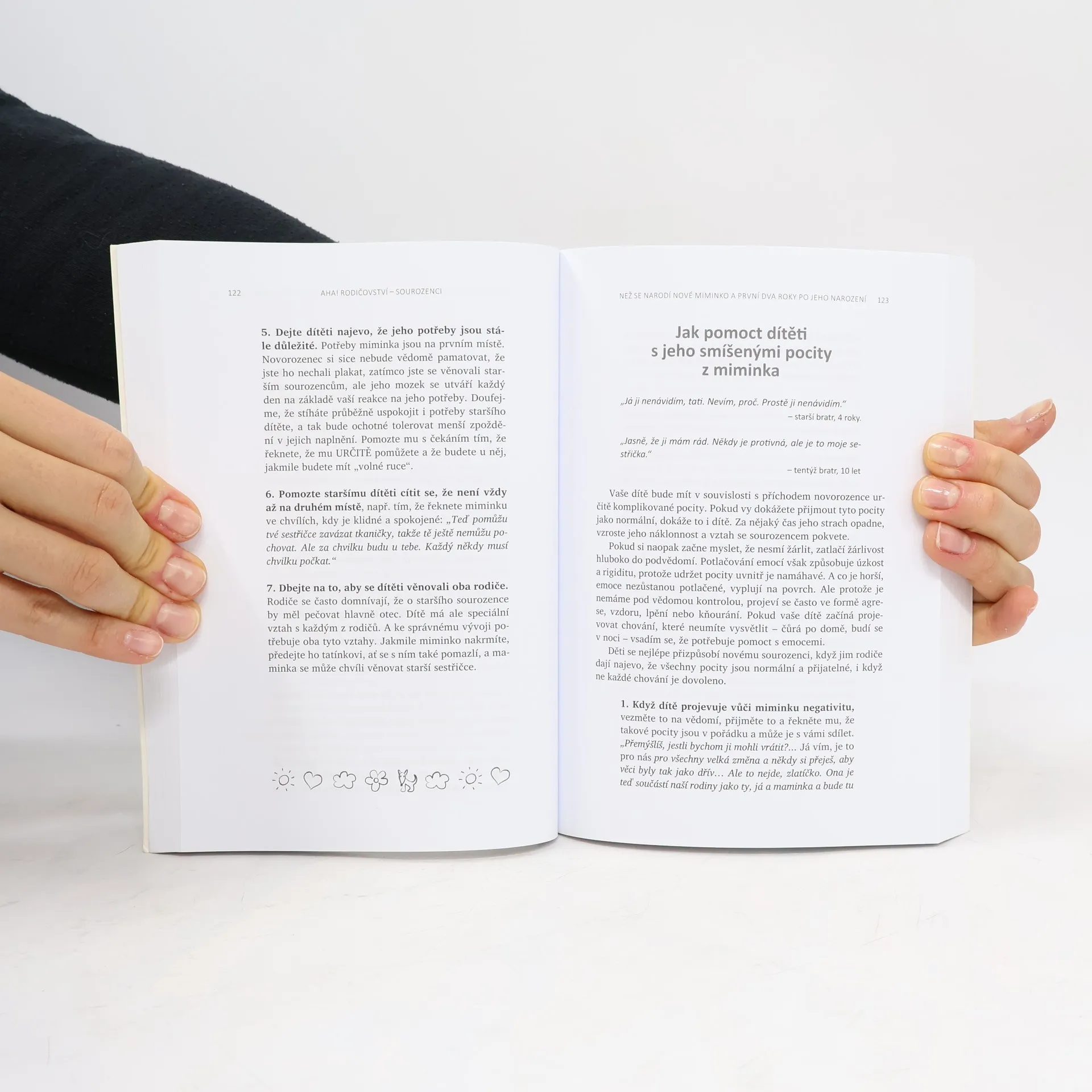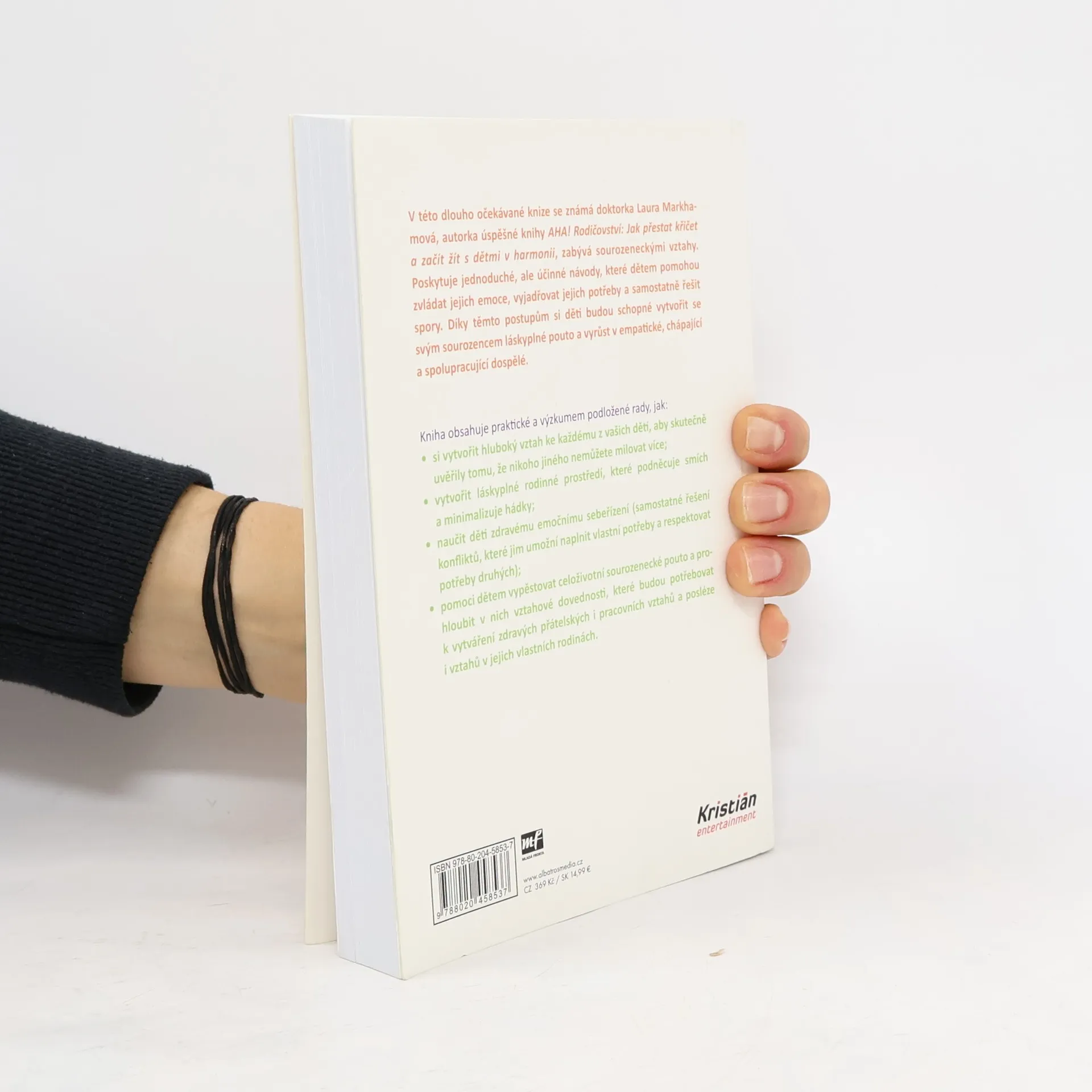 Jak zabránit sporům mezi sourozenci a vychovat z nich přátele na celý život. V této dlouho očekávané knize se známá doktorka Laura Markhamová, autorka úspěšné knihy AHA! Rodičovství: Jak přestat křičet a začít s dětmi žít v harmonii, zabývá sourozeneckými vztahy. Poskytuje jednoduché, ale účinné návody, které dětem pomohou zvládat jejich emoce, vyjadřovat jejich potřeby a samostatně řešit spory. Díky těmto postupům si děti budou schopné vytvořit se svým sourozencem láskyplné pouto a vyrůst v empatické, chápající a spolupracující dospělé. Kniha obsahuje praktické a výzkumem podložené rady, jak: - si vytvořit hluboký vztah ke každému z vašich dětí, aby skutečně uvěřily tomu, že nikoho jiného nemůžete milovat více; - vytvořit láskyplné rodinné prostředí, které podněcuje smích a minimalizuje hádky; - naučit děti zdravému emočnímu sebeřízení (samostatné řešení konfliktů, které jim umožní naplnit vlastní potřeby a respektovat potřeby druhých); - pomoci dětem vypěstovat celoživotní sourozenecké pouto a prohloubit v nich vztahové dovednosti, které budou potřebovat k vytváření zdravých přátelských i pracovních vztahů a posléze i vztahů v jejich vlastních rodinách.