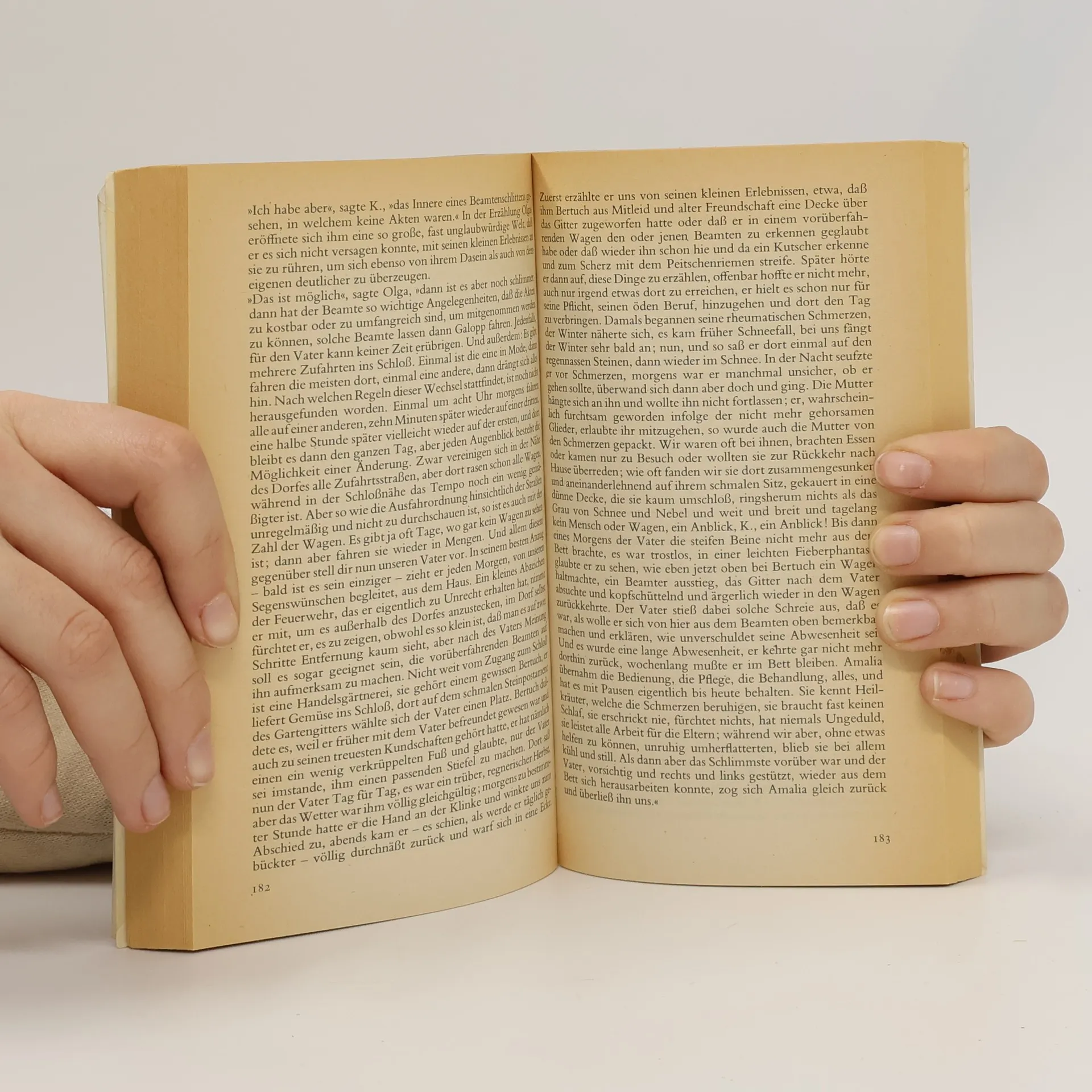 Jeder Versuch, ins Schloß zu gelangen, mißlingt; so bleibt es nah und fern zugleich; seine Hierarchie fordert Gehorsam, aber die Weisungen bleiben dunkel und unverständlich. ”Dieses Dorf ist Besitz des Schlosses, wer hier wohnt oder übernachtet, wohnt oder übernachtet gewissermaßen im Schloß. Niemand darf das ohne gräfliche Erlaubnis.“ ”Alles, was über dieses Buch gesagt werden kann, ist nur tastendes Nebenher. Man muß es selbst nachlesen, Zeile für Zeile, wie hier aus einem oft lieblichen Zusammensein von Ironie und Pietät die drohende Strenge des letzten Gerichts auftaucht.“ Hans Sahl
