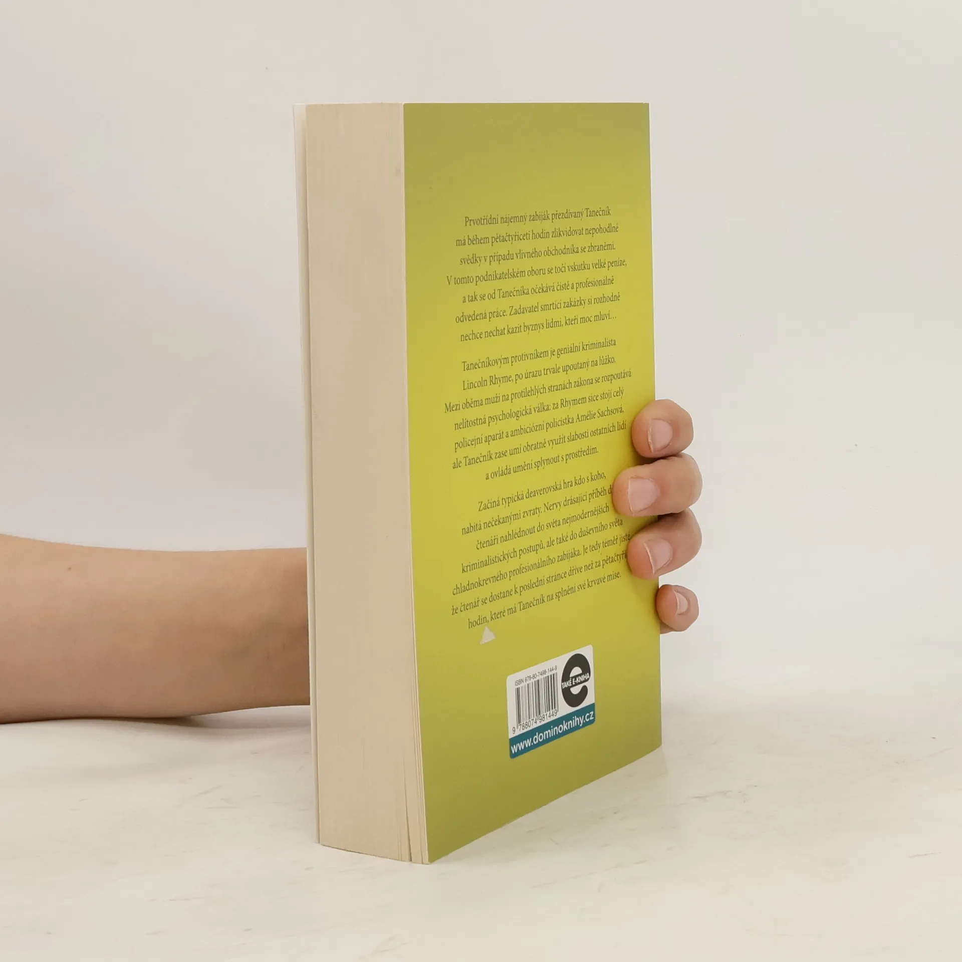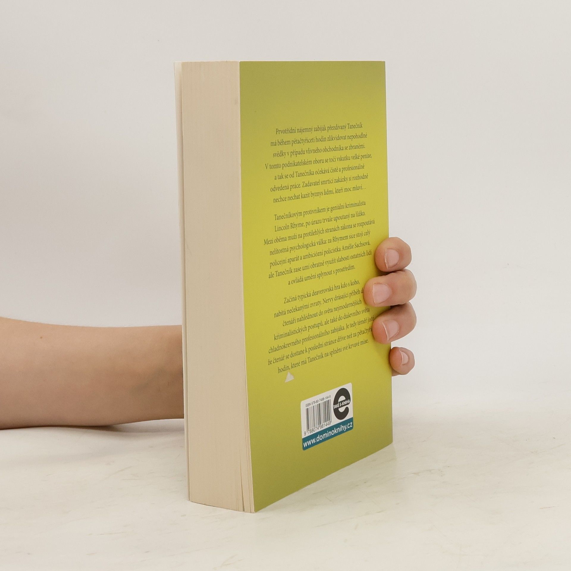 Geniální kriminalista Lincoln Rhyme a mladá policistka Amélie Sachsová, kteří se čtenářům poprvé představili v bestselleru Sběratel kostí, řeší další zapeklitý případ: během pětačtyřiceti hodin musejí vypátrat profesionálního vraha, přezdívaného Tanečník. Tanečník má v této lhůtě zlikvidovat tři nepohodlné svědky v případu vlivného obchodníka se zbraněmi a již od prvního okamžiku nenechává nikoho na pochybách, že si důvtipem a inteligencí nezadá s Rhymem. Mezi oběma muži se na dálku rozpoutá nelítostná psychologická válka, plná zvratů a úskoků, která se neobejde bez těžkých ztrát na životech. Nervy drásající příběh dává nahlédnout do zákulisí americké policejní praxe a zároveň je brilantní sondou do duševního světa chladnokrevného zabijáka. V publikaci uvedeno chybně vydání třetí, správně je: vydání čtvrté