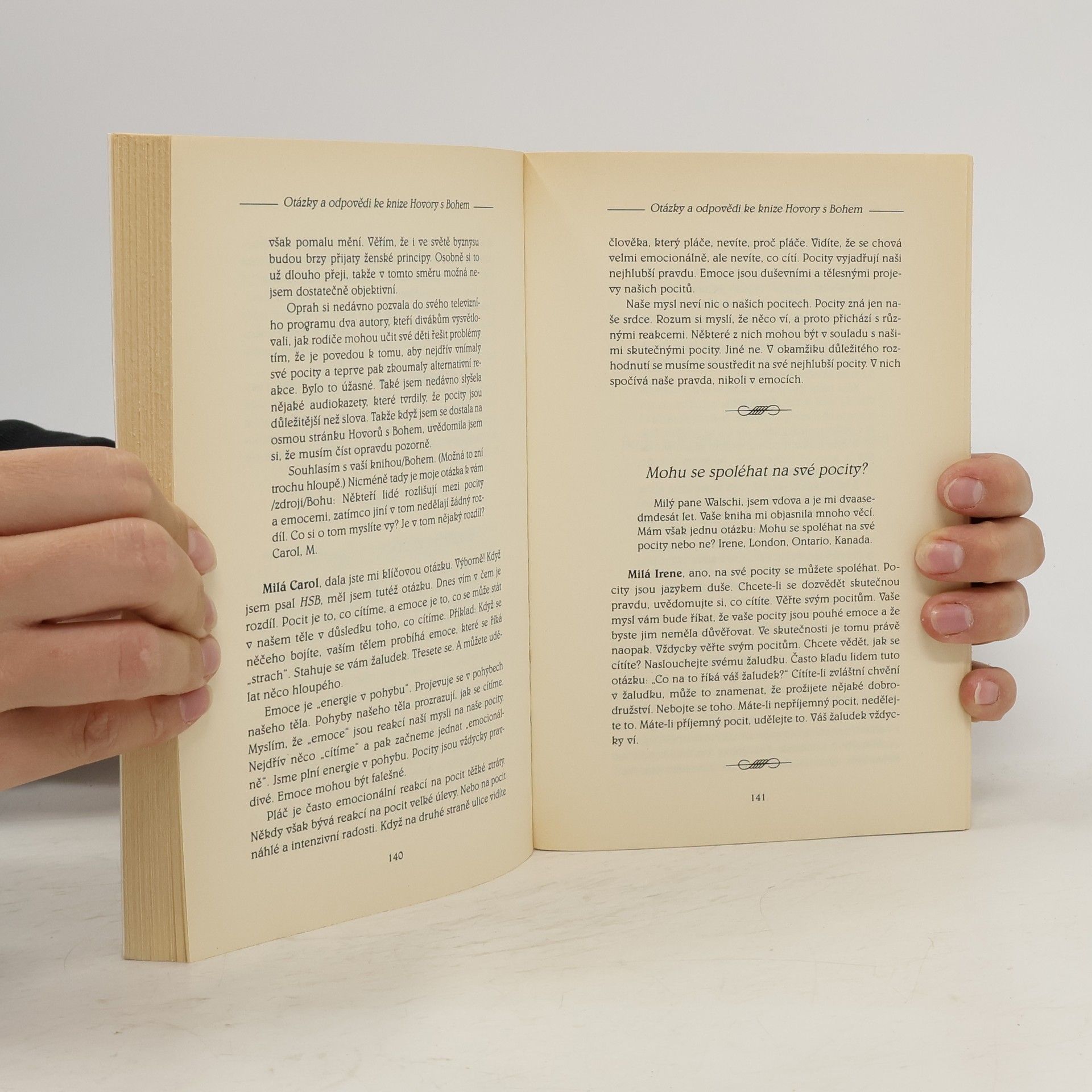 Miliony čtenářů milují Hovory s Bohem které byly přeloženy do šestadvaceti jazyků. Tisíce čtenářů posílají Nealu Walschovi své otázky - otázky, které se týkají náboženství, dobra a zla, tělesného a duševního zdraví, smrti, proroctví, povahy Boha a vesmíru, modlitby, andělů a ďáblů, duchovní cesty, partnerských vztahů a mnoha dalších problémů. V této knize Neale odpovídá se svým charakteristickým humorem a moudrostí na nejzajímavější a nejprovokativnější otázky; výsledkem je nesmírně inspirující kniha. Nealovy odpovědi ilustrují přímé spojení mezi duchovní a hmotnou realitou a ukazují, že to, čím jsme a co děláme, je výsledkem toho, jak myslíme a v co věříme. Tato kniha nám dává příležitost zamyslet se nad sebou, změnit se, a tím možná změnit svět.