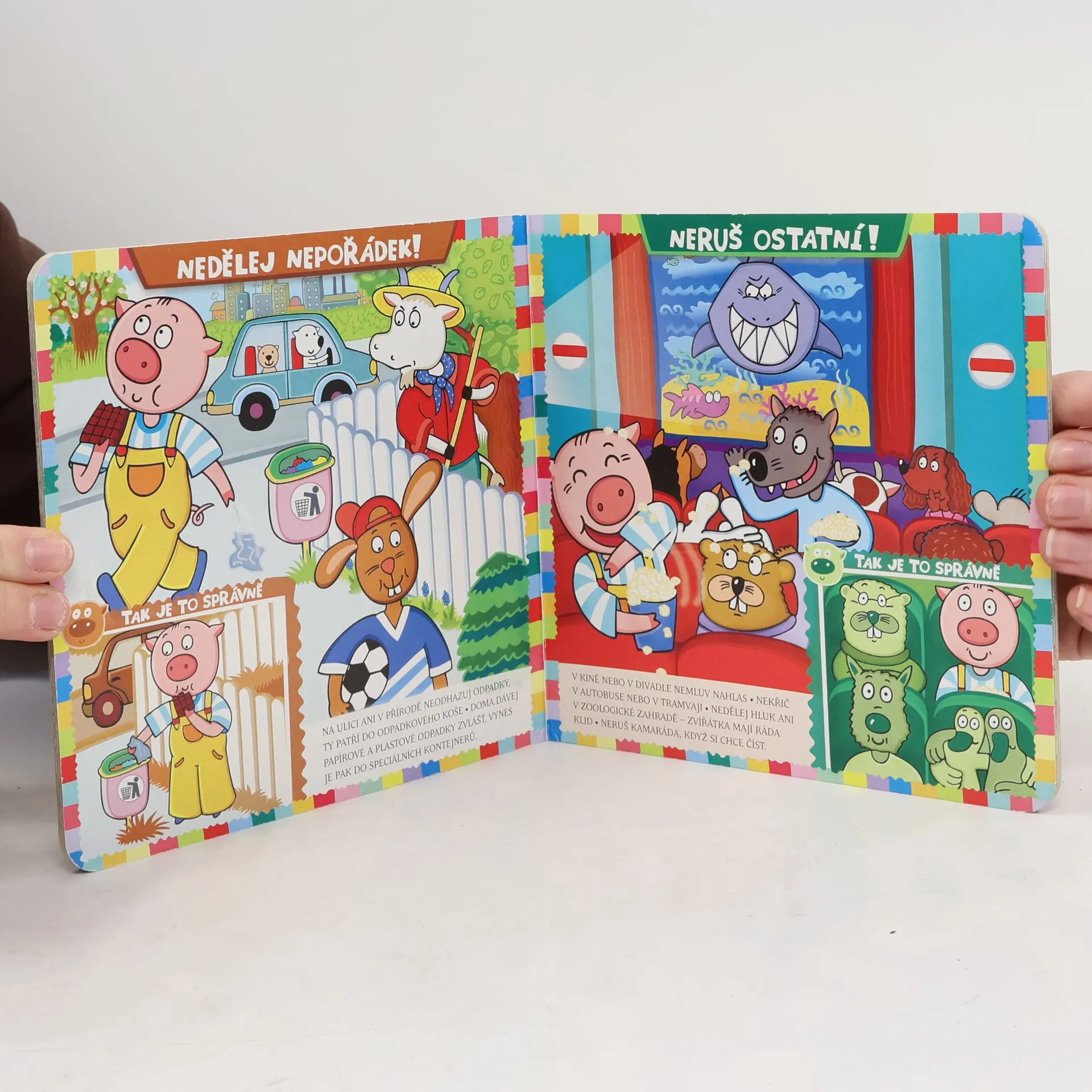 Malé prasátko Chrochtík, jeho rodina a kamarádi připomínají dětem za pomoci velkých veselých obrázků základy správného chování: zdravení, děkování, omluva, pravidla slušného chování v dopravních prostředcích, doma, na hřišti, v kině, na ulici atd