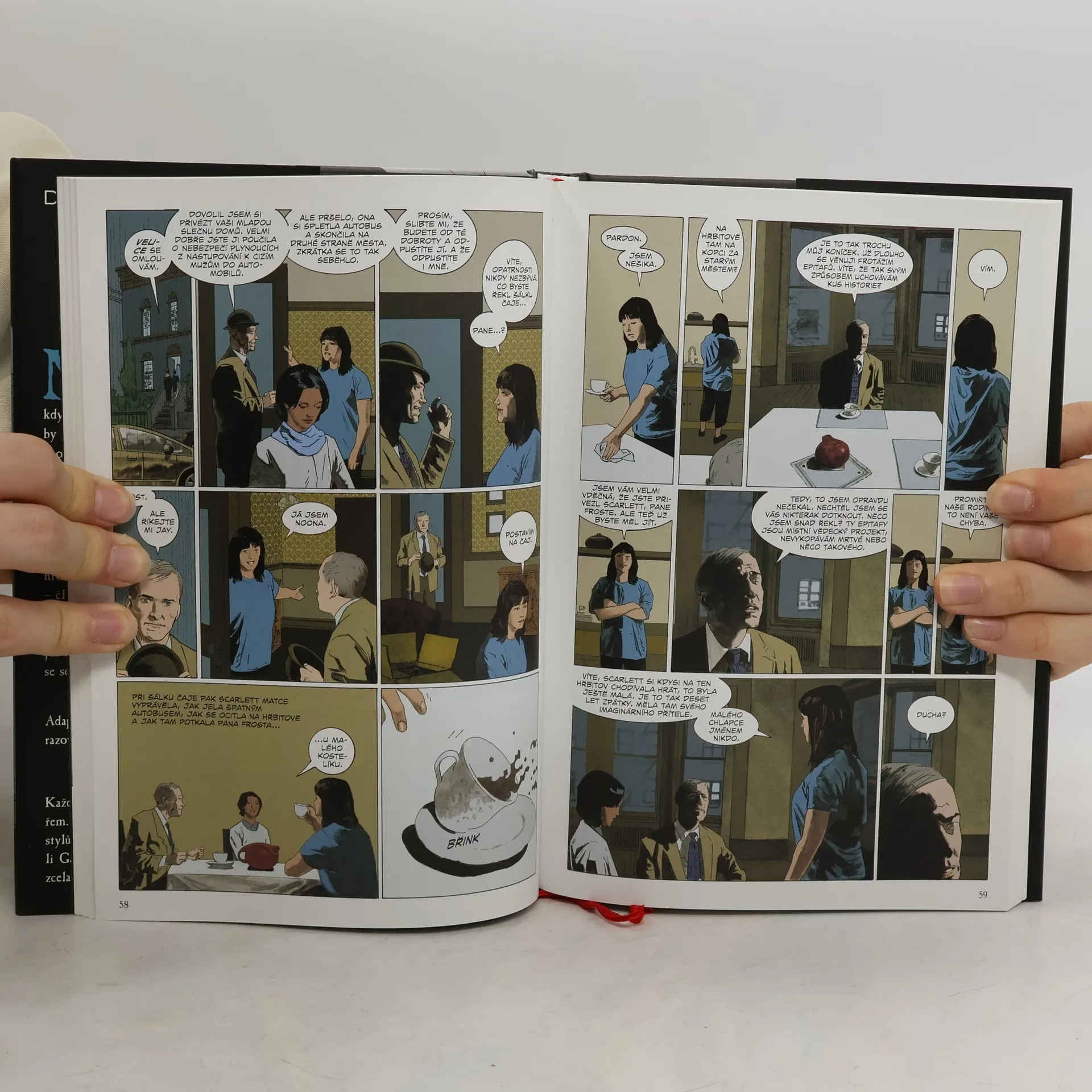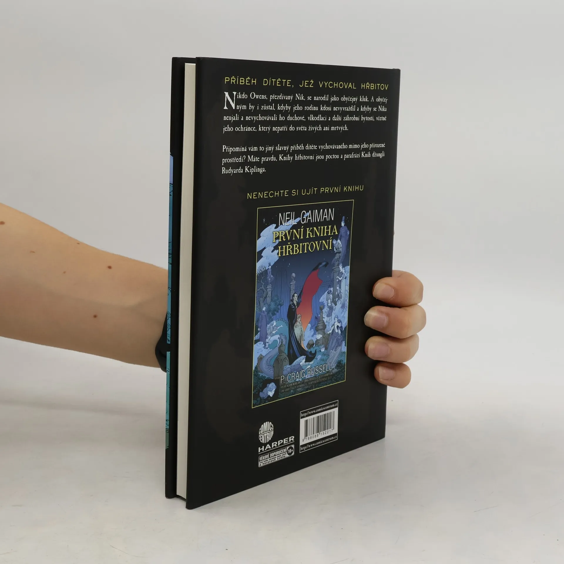 Příběh dítěte, jež vychoval hřbitov. Nikdo Owens, přezdívaný Nik, se narodil jako obyčejný kluk. A obyčejným by i zůstal, kdyby jeho rodinu kdosi nevyvraždil a kdyby se Nika neujali a nevychovávali ho duchové, vlkodlaci a další záhrobní bytosti, včetně jeho ochránce, který nepatří do světa živých ani mrtvých. Nik nesmí opouštět hřbitov, venku mu totiž hrozí nebezpečí v podobě vraha jeho rodiny – člověka jménem Jack. Přesto na hřbitově zažije řadu dobrodružství – poradí si s pradávným, modře potetovaným Piktem, projde branou do opuštěného města ghúlů nebo se setká s podivným, děsivým Ševelem. Připomíná vám to jiný slavný příběh dítěte vychovávaného mimo jeho přirozené prostředí? Máte pravdu, Knihy hřbitovní jsou poctou i parafrází Knih džunglí Rudyarda Kiplinga. Druhá, závěrečná kniha adaptace Knihy hřbitovní do podoby obrazové novely.