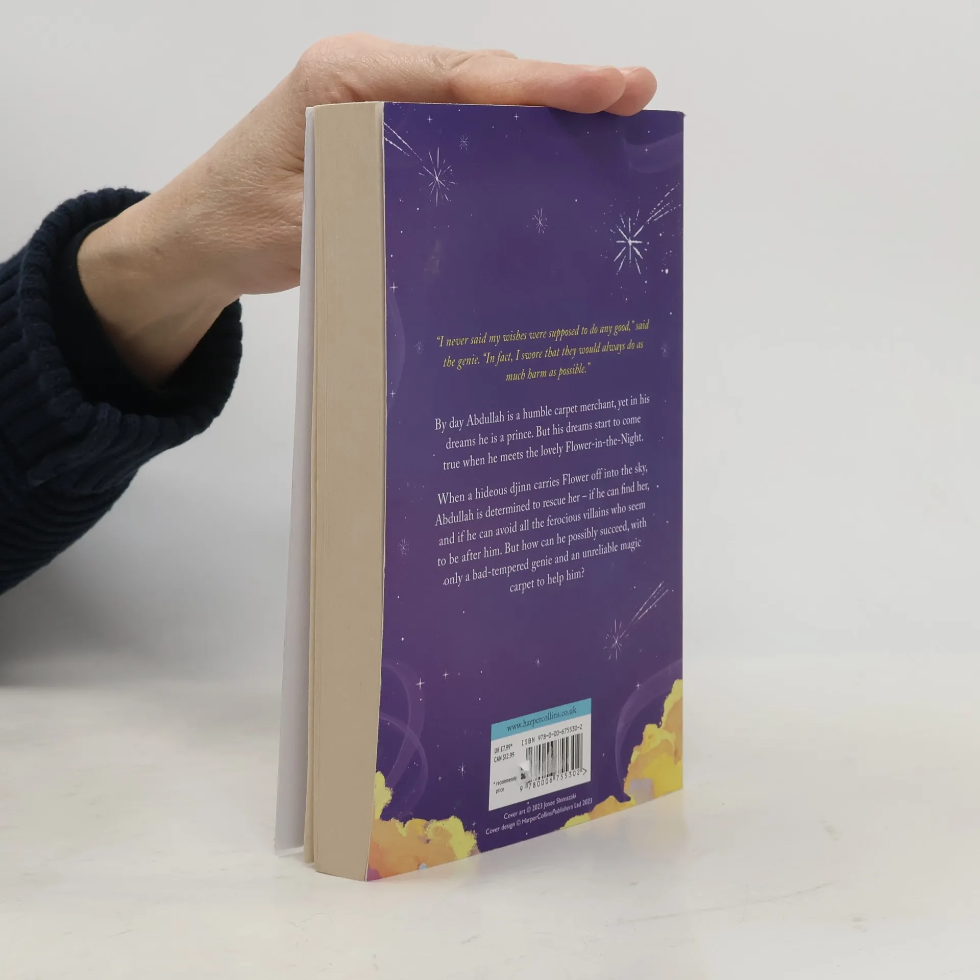 By day Adbullah is a humble carpet merchant, yet in his dreams he is a prince. But his dreams start to come true when he meets the lovely Flower-in-the-Night. When a hideous djinn carries Flower off into the sky, Adbullah is determined to rescue her - if he can find her, and if he can avoid all the ferocious villains who seem to be after him. But how can he possibly succeed, with only a bad-tempered genie and an unreliable magic carpet to help him?