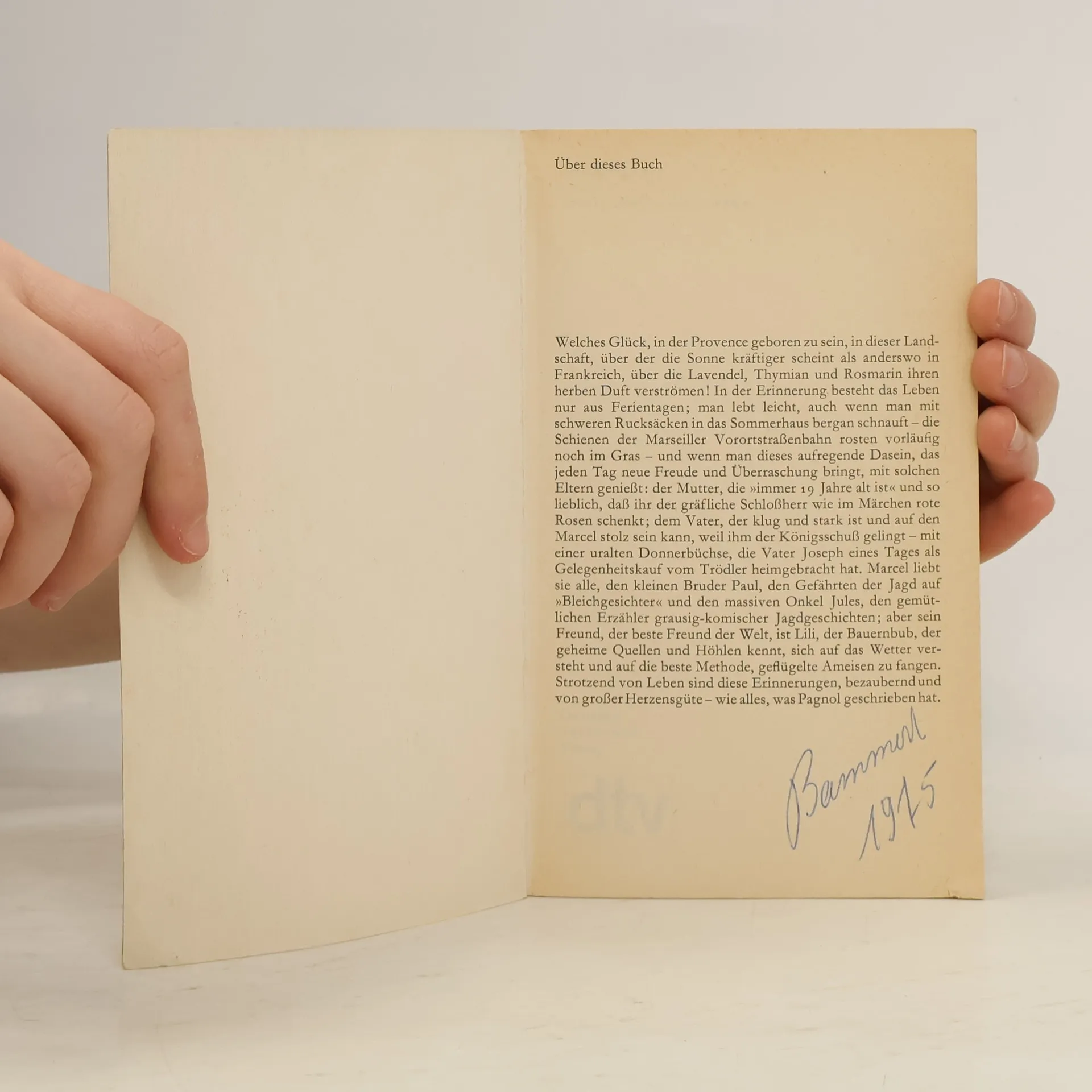 Marseille um die Jahrhundertwende. Eine Familie bricht auf in die Ferien in der Provence. Dort beginnt für den elfjährigen Marcel ein Sommer voller Schönheit und Abenteuer in den Wiesen und Hügeln der Estaque inmitten von Zikaden und dem Lavendel- und Rosmarinduft der Hochebene.