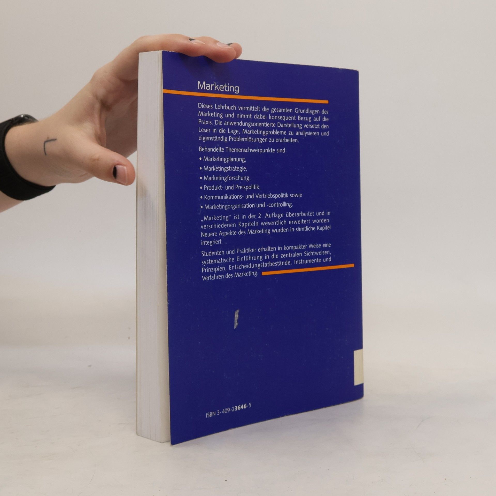 Dieses Lehrbuch vermittelt die gesamten Grundlagen des Marketing und nimmt dabei konsequent Bezug auf die Praxis. Die anwendungsorientierte Darstellung versetzt den Leser in die Lage, Marketingprobleme zu analysieren und eigenständig Problemlösungen zu erarbeiten. In der 11. Auflage wurden neue Entwicklungen, wie z. B. Social Media Kommunikation, integriert. Das Kapitel Marketing Controlling wurde vollständig überarbeitet.