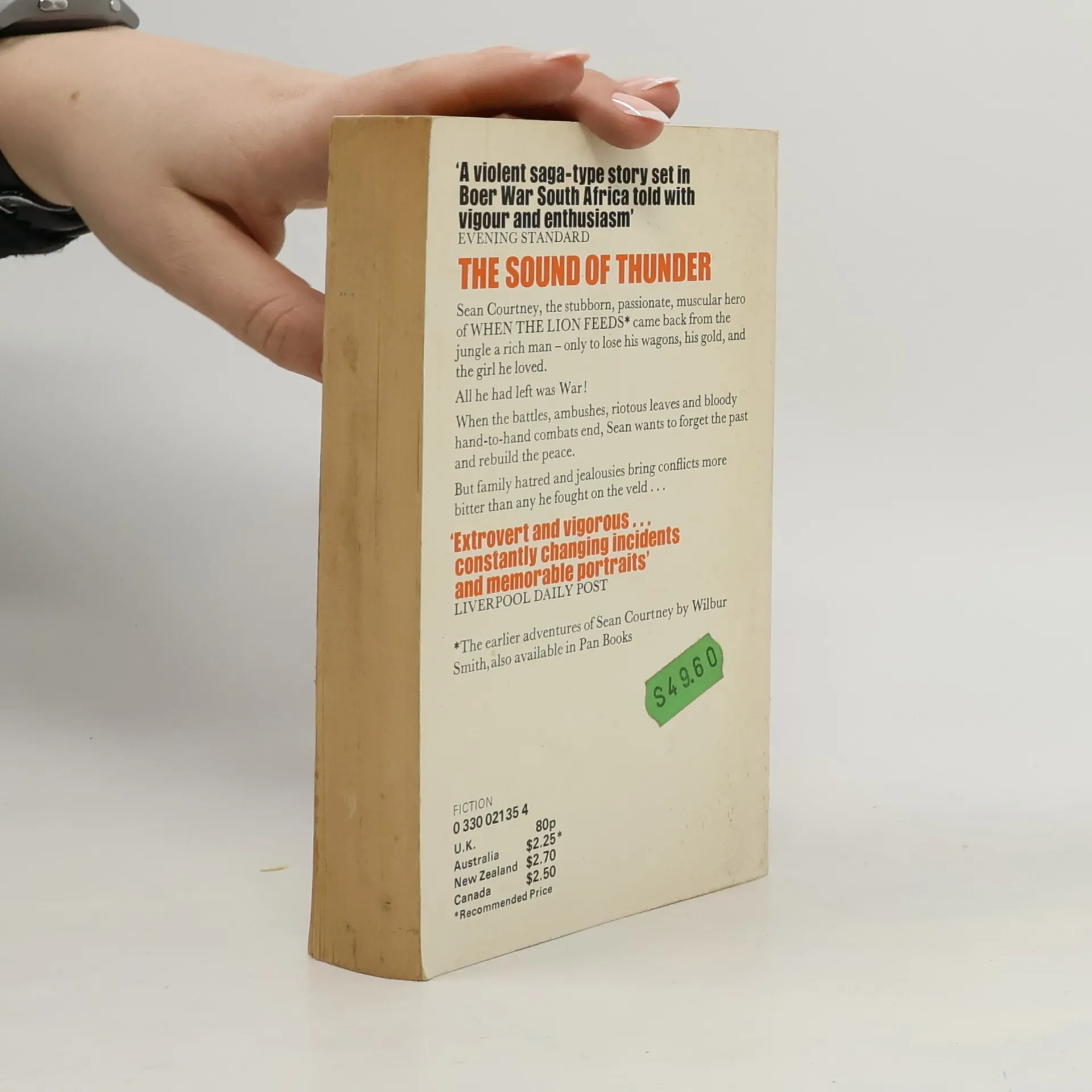 THE ROAR OF THUNDER (known as THE SOUND OF THUNDER in the United Kingdom) continues the Courtney saga where WHEN THE LIONS FEEDS left off. Sean Courtney is off to fight the burghers in the Boer War -- first in harrowing missions on the front lines for the British Guides, then as the leader of commandos designed to fight the Boers on their own terms -- guerilla combat in the field. The peace that follows find Sean with hopes of marriage and settling down to farming. But the hatred borne by his twin brother will not allow a peaceful life. Garry, who has been forced to live in the shadow of his twin's superiority since childhood, has vowed to pay him back for the wrongs done him.